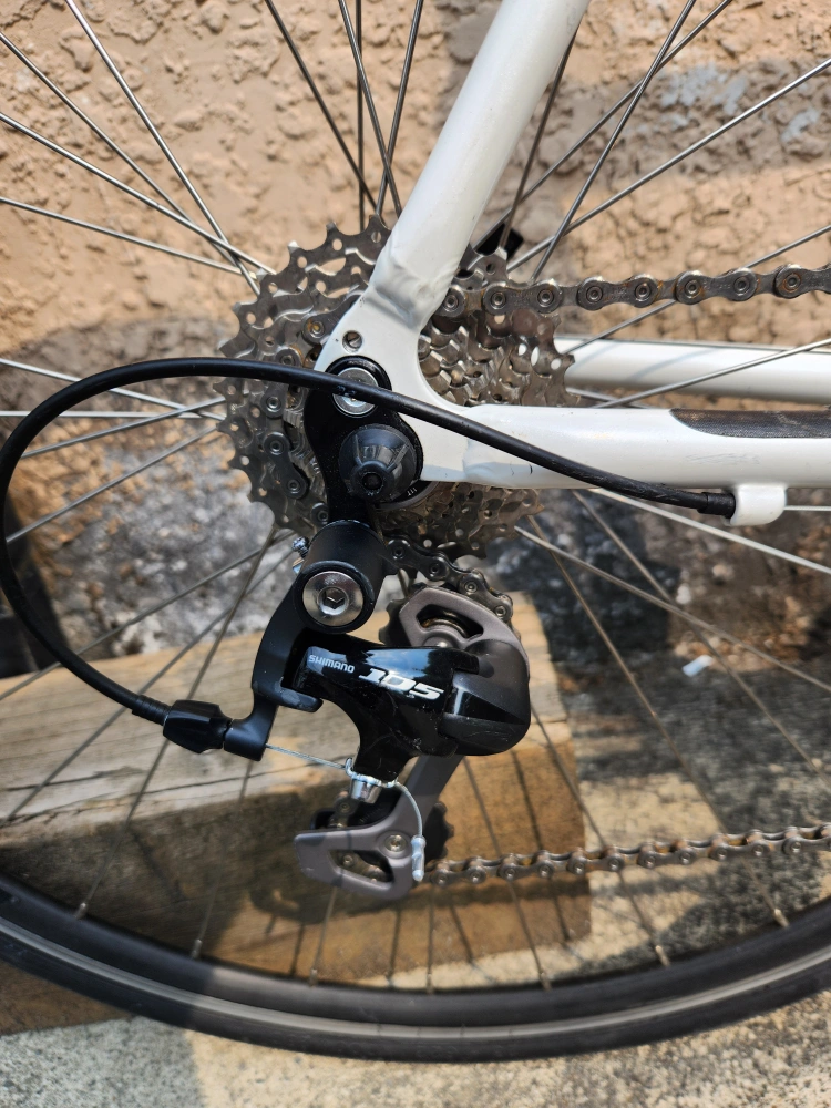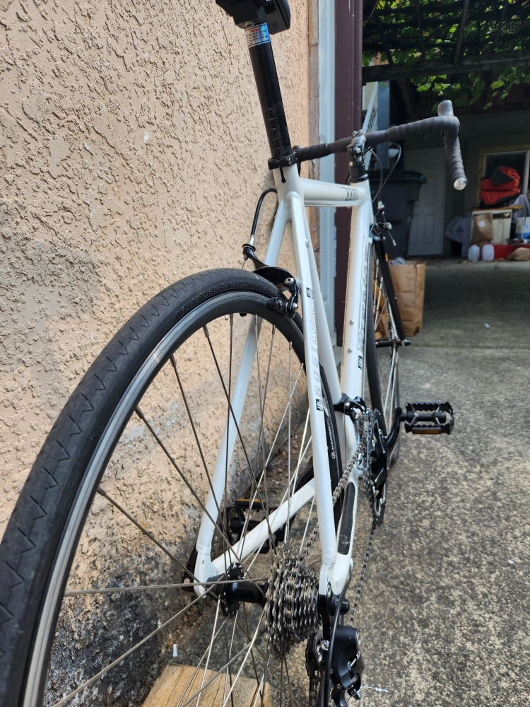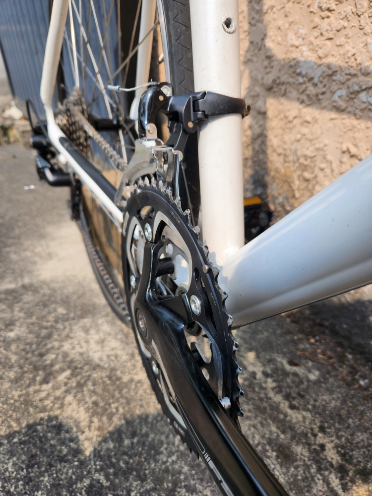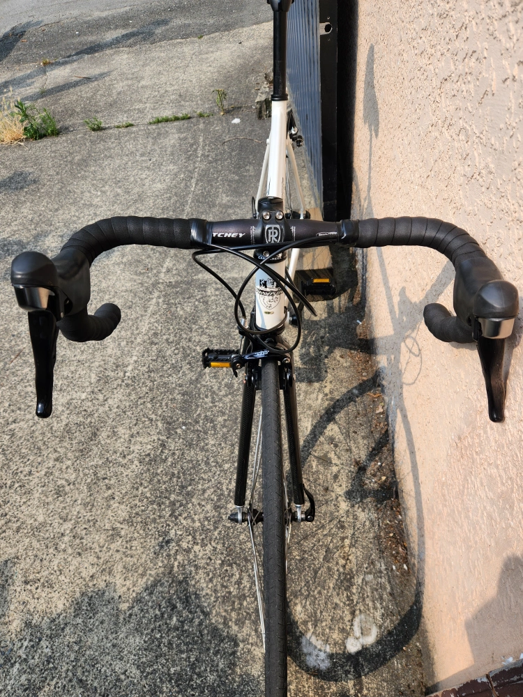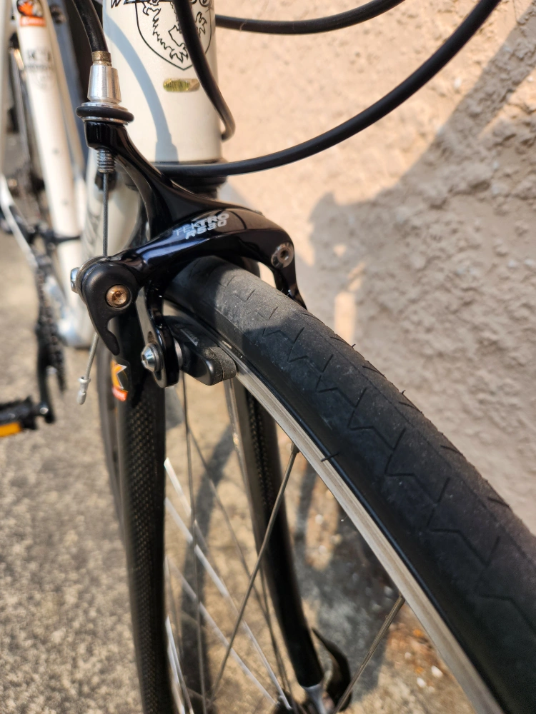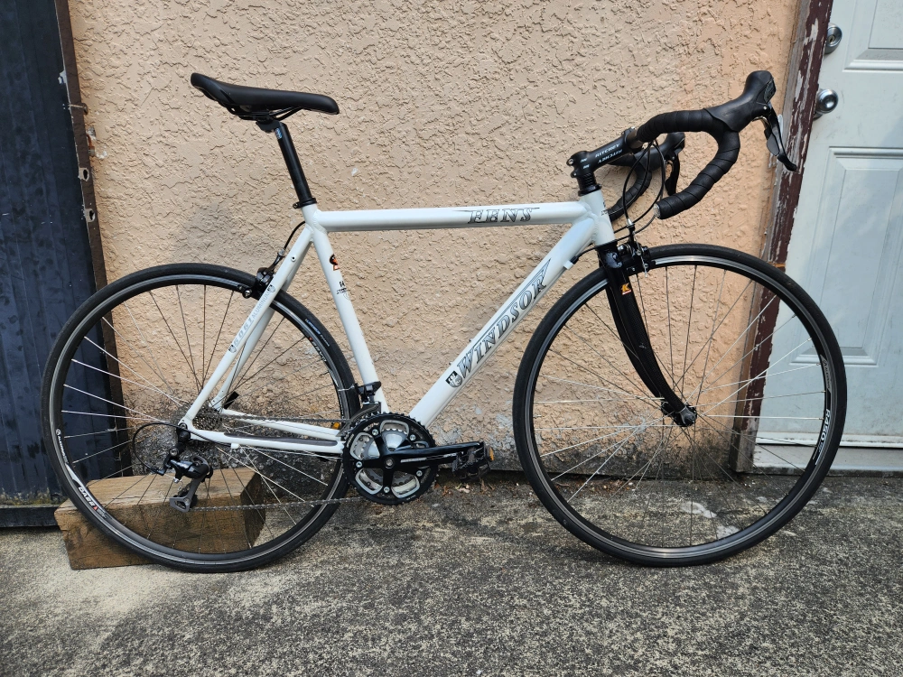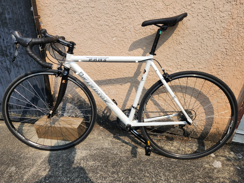 89Description: - Middle to high-end modern road/touring bike - Size is medium (top tube 53 cm, seat tube 50 cm); should fit somebody around from 5' 9" to 5' 11" - Weighs around 9 kg - Frameset is aluminum with a carbon fork; manufactured by Kinesis, a well known bike frame maker: - "Kinesis both produce framesets under their own name, but also produce frames for other brands. These brands include, Commencal, Diamondback, Felt, GT, Haro, Ideal, Jamis, K2, Kona, Kross, Raleigh, Redline, Santa Cruz, Schwinn, Storck, Sunn, Titus, Torker, and Trek." - Uses Shimano's 105 (5700) triple groupset, with 3x10 speeds - An overhaul has been complete to restore the bike, which includes service for all bearings (wheels hubs, headset) and the take-off and cleaning of all parts - All worn out parts (cables, bar tape) have been replaced with new ones - All original parts except pedals, saddle, and seat post - Some minor scratches on the frameset and parts, that I tried masking with paint pens - Test ridden and is in good working condition; ready to ride - Mounting holes for rear panniers along with a 3x shifting system allows for touring and commuting - *The bike was in a minor accident that resulted in the derailleur cage being replaced; it does not affect the functionality of the bike Specifications: - Kinesis-built 2011 Windsor Fens frameset - Partial 105 (5700) groupset (includes STI shifters, front and rear derailleurs, and cassette) - FSA Vero crankset - Tektro rim brake calipers - Alexrims DA22 rims with Formula hubset - Michelin Dynamic 700 x 23c tires - Ritchey aluminum bar and stem - Unbranded aluminum seat post - Unbranded saddle - Unbranded aluminum pedals Price: - $599 obo - Open to offers and road bike related trades (looking for parts, projects, or complete bikes) - Payment in cash or e-transfer Pick-up only near Canadian Tire on SW Marine Dr. Please don't hesitate to message me for any questions or concerns!
