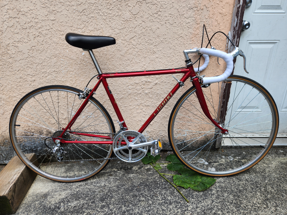 89Description: - Used vintage Nishiki road bike - Size is XS, 48 cm (fits somebody 4' 11" to 5' 3"); perfect for someone shorter or younger - Weighs a bit over 10 kg - This was an entry level road bike made in Japan and sold under the Nishiki brand around the 1980s - Framset used Toshiba hi-tensile steel tubing - The bike uses Suntour's AR groupset with down tube shifters - An overhaul has been complete to restore the bike, which includes service for all bearings (wheels hubs, headset, bottom bracket) and the take-off and cleaning of all parts - All worn out parts (cables, bar tape, cable housing, brake pads) have been replaced with new ones - All original parts - Some minor scratches on the frameset and parts - Test ridden and is in good working condition; ready to ride Specifications: - Nishiki Regal frameset made with Toshiba hi-tensile steel tubing - Suntour AR groupset (downtube shifters, front and rear derailleurs) - Dia compe brakeset - Suguino crankset - 27 x 1 1/4" wheelset with Araya rims Price: - $299 obo - Will consider road bike related trades (parts, projects, or complete bikes) - Payment in cash or e-transfer Pick-up only near the Canadian Tire on SW Marine Dr. Please don't hesitate to message me for any questions or concerns!