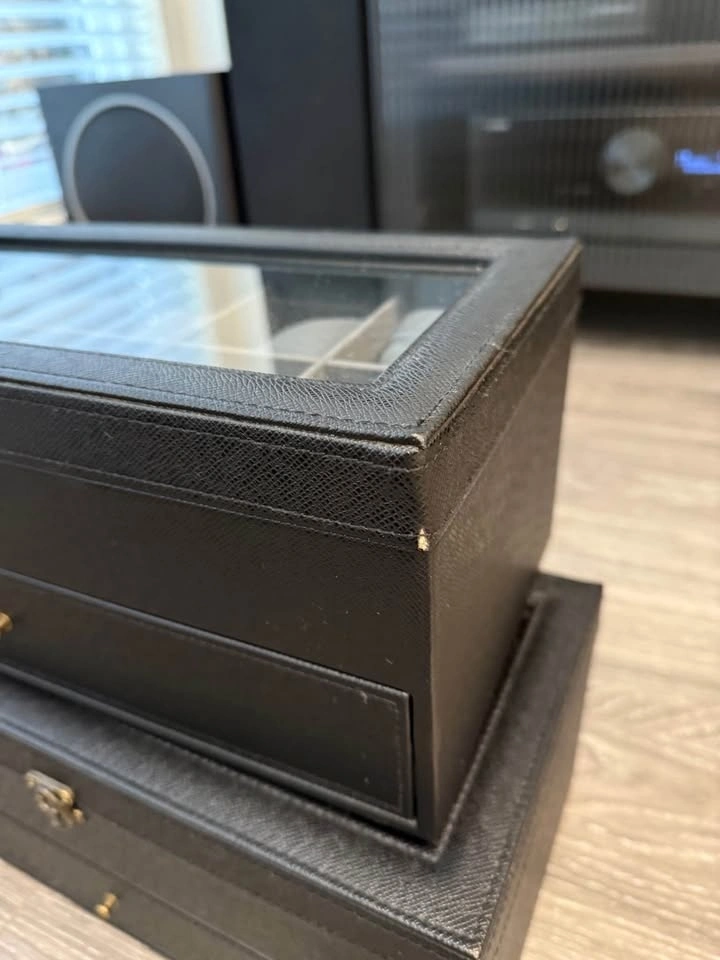 Watch and sunglasses leather display storage box.