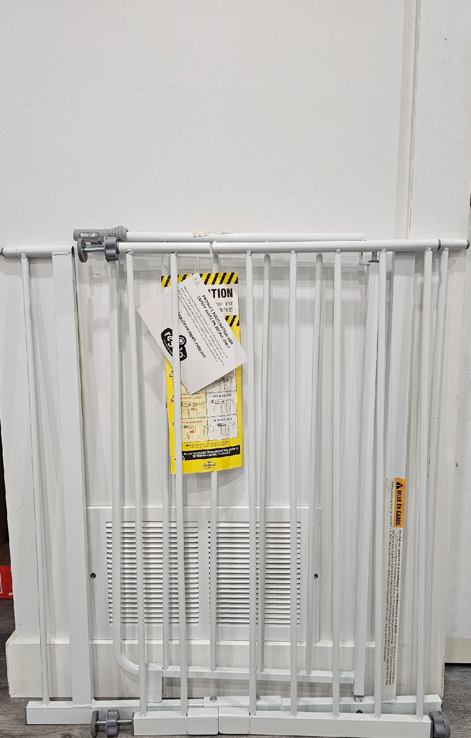 105Selling a white Regalo baby gate to keep your little one safe and sound! It's in great condition and ready for a new home. Pressure mount. No tools or drilling required.