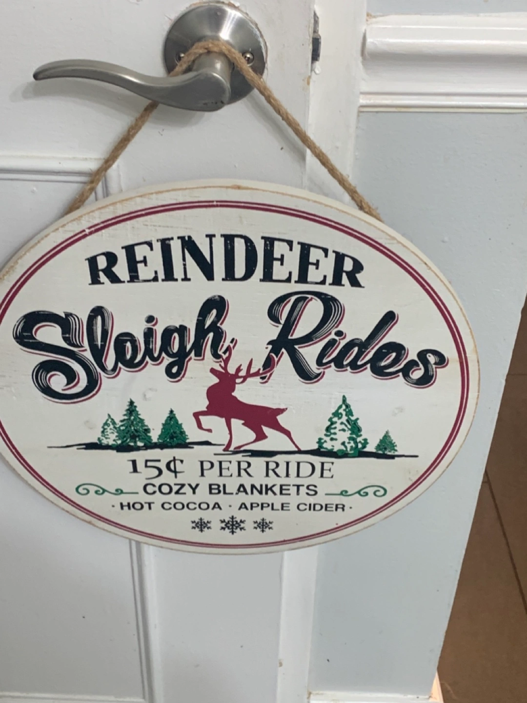 15Add a touch of festive charm to your home with this adorable Reindeer Sleigh Rides sign! It features a classic design with a reindeer and cozy winter scene. Perfect for adding a warm and inviting atmosphere to any room during the holiday season