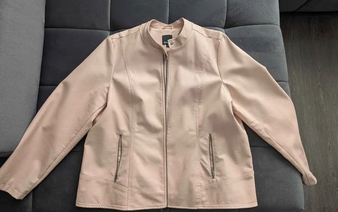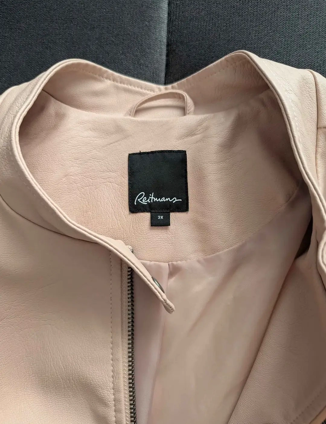Selling a Reitmans faux leather jacket in size 2X. It's a beautiful blush colour and in great condition! Perfect for layering or wearing on its own