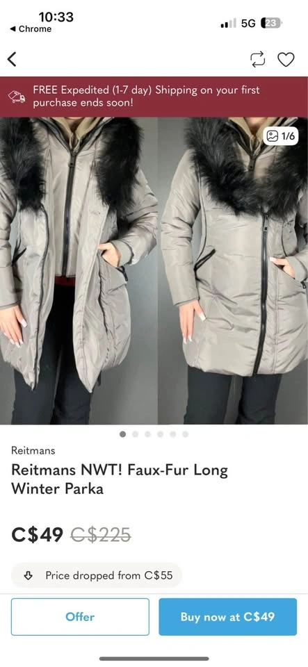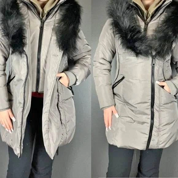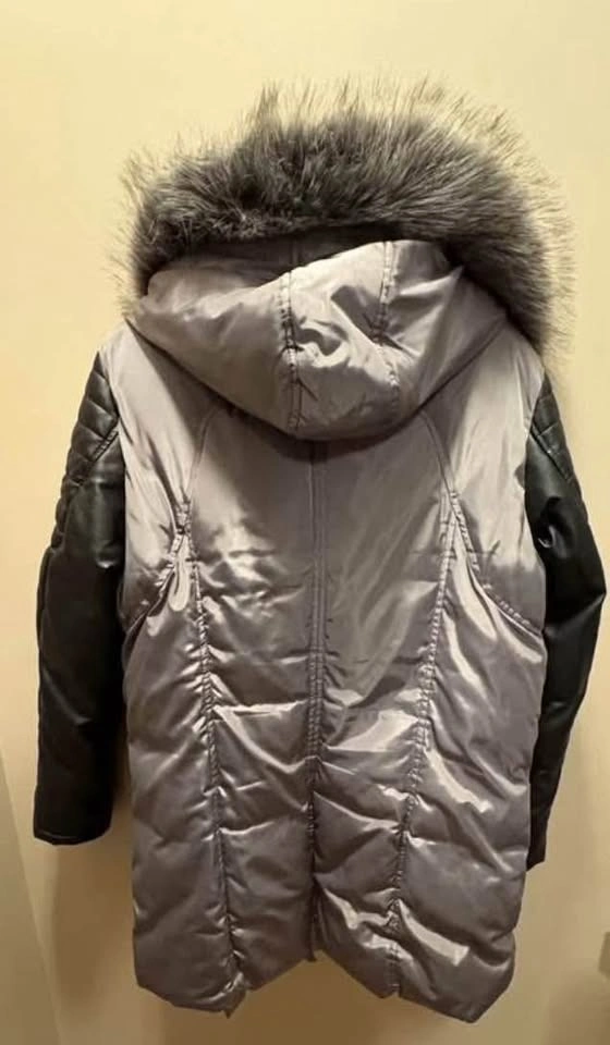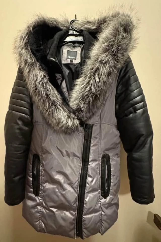 5Great coat, faux fur. Minor leather distress. Size XL. True to size.
