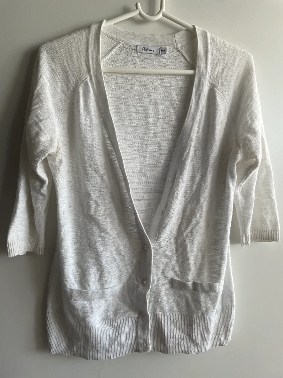 607A lovely, gently used white cardigan from Reitmans! It's a size M and in great condition. Perfect for layering or adding a touch of elegance to any outfit