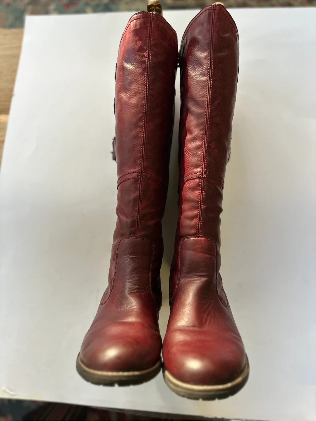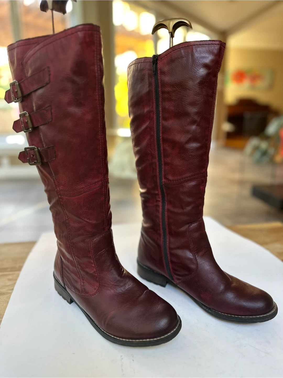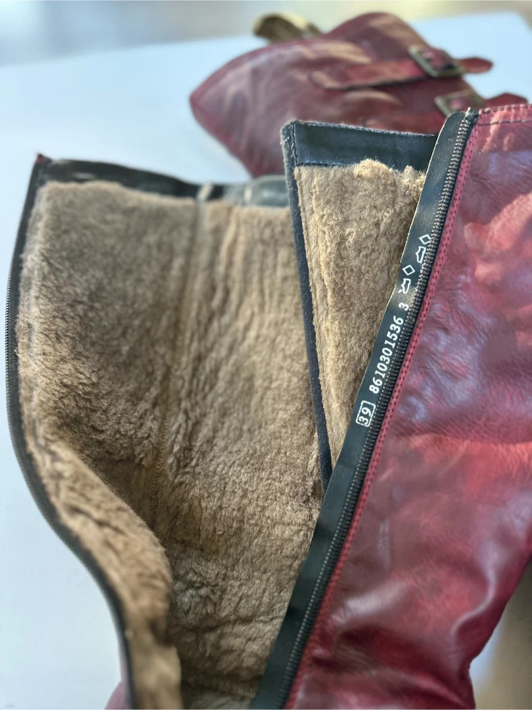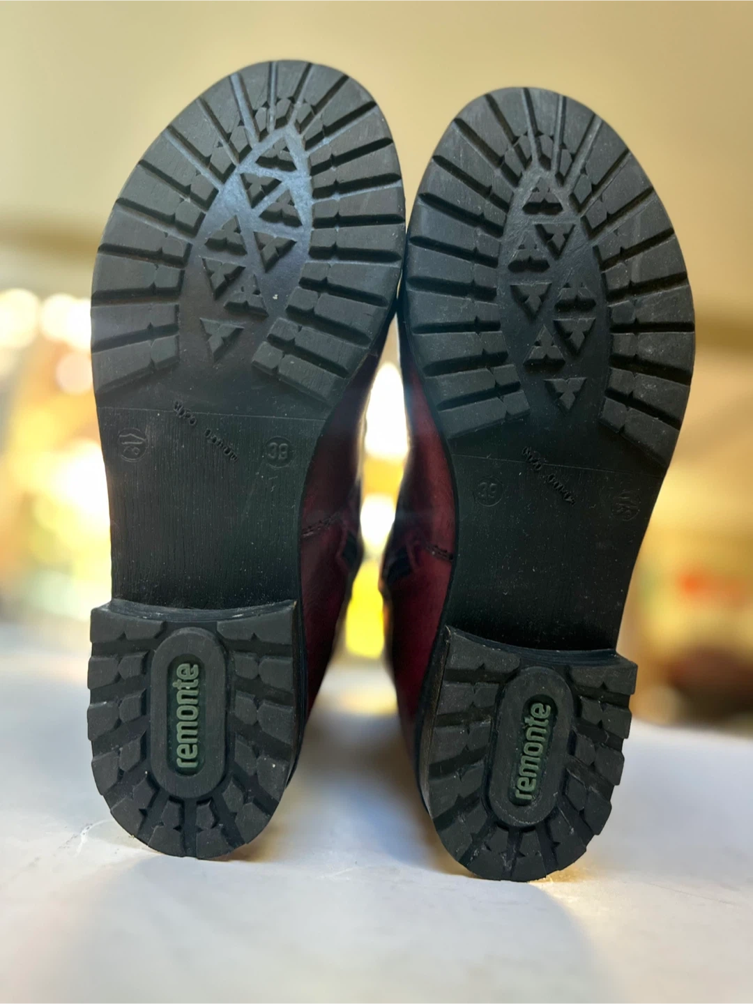65In excellent preloved condition. REMONTE knee high vegan leather boots with adjustable side buckles for wider calves and a faux fur lining to keep your feet warm. Size : EUR 39/ US 8-8.5 These shoes have been meticulously cleaned and sanitized. From a smoke free, pet free home. Pick up in Alta Vista.