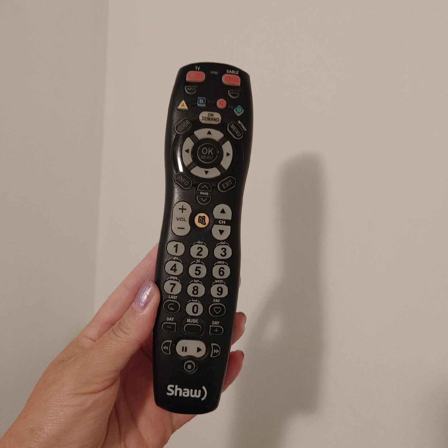 Selling a used Shaw cable remote in good condition. It has all the standard buttons you'd expect, including volume, channel, guide, and on-demand.