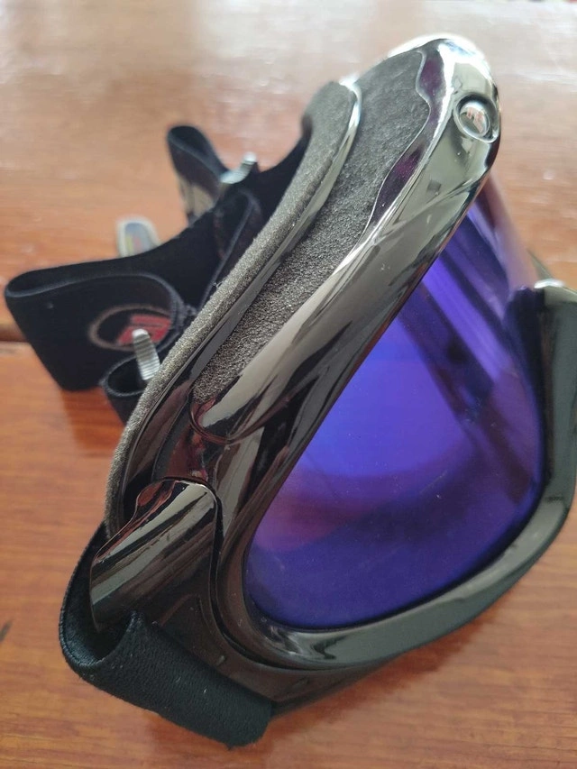 60Get ready to hit the slopes with these Ride snow goggles! These goggles feature a sleek black frame and vibrant purple lenses, perfect for clear vision in various light conditions. While they've been used, they're still in great shape and ready for your next winter adventure. Snag these goggles and you'll be shredding in style!