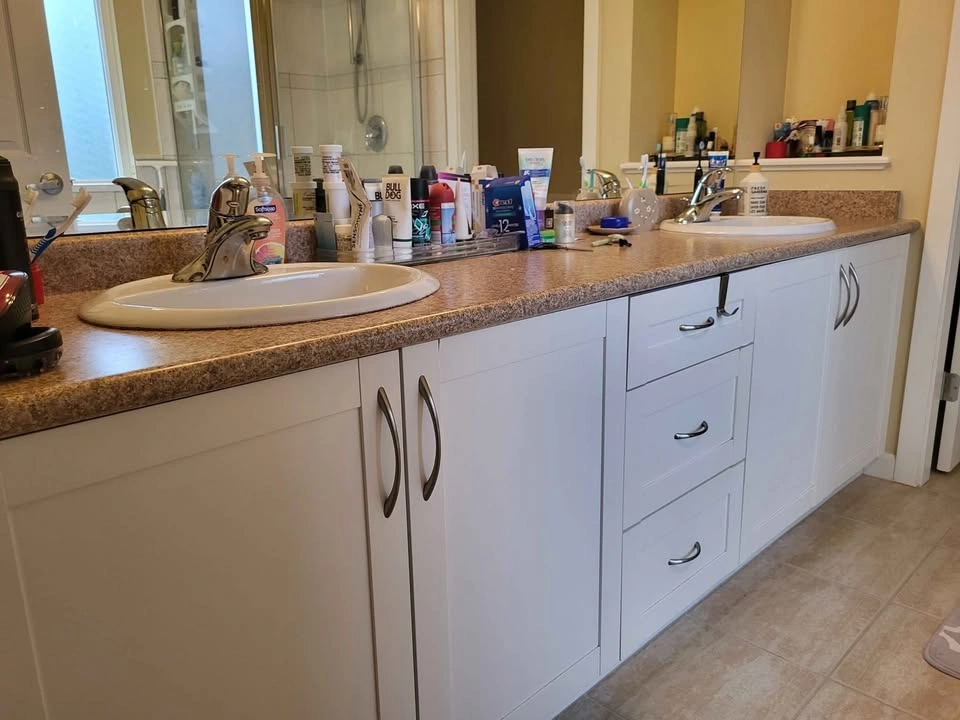 12Home renovations sale..... Kitchen cabinets includes countertops and sink with taps. Bathroom vanities and mirrors. 2 single sink and 1 double sink. Dining/nook hanging lights. Stairway chandelier. Laminate flooring, about 300 sqft. Gas fireplace. Glass sliding door with screen. 71" wide and 94" tall. Comes with vertical blinds. Make any reasonable offer and its yours. Professional removal will be in next week or 2. If need earlier, that can be arranged too. Check out my other listing too!
