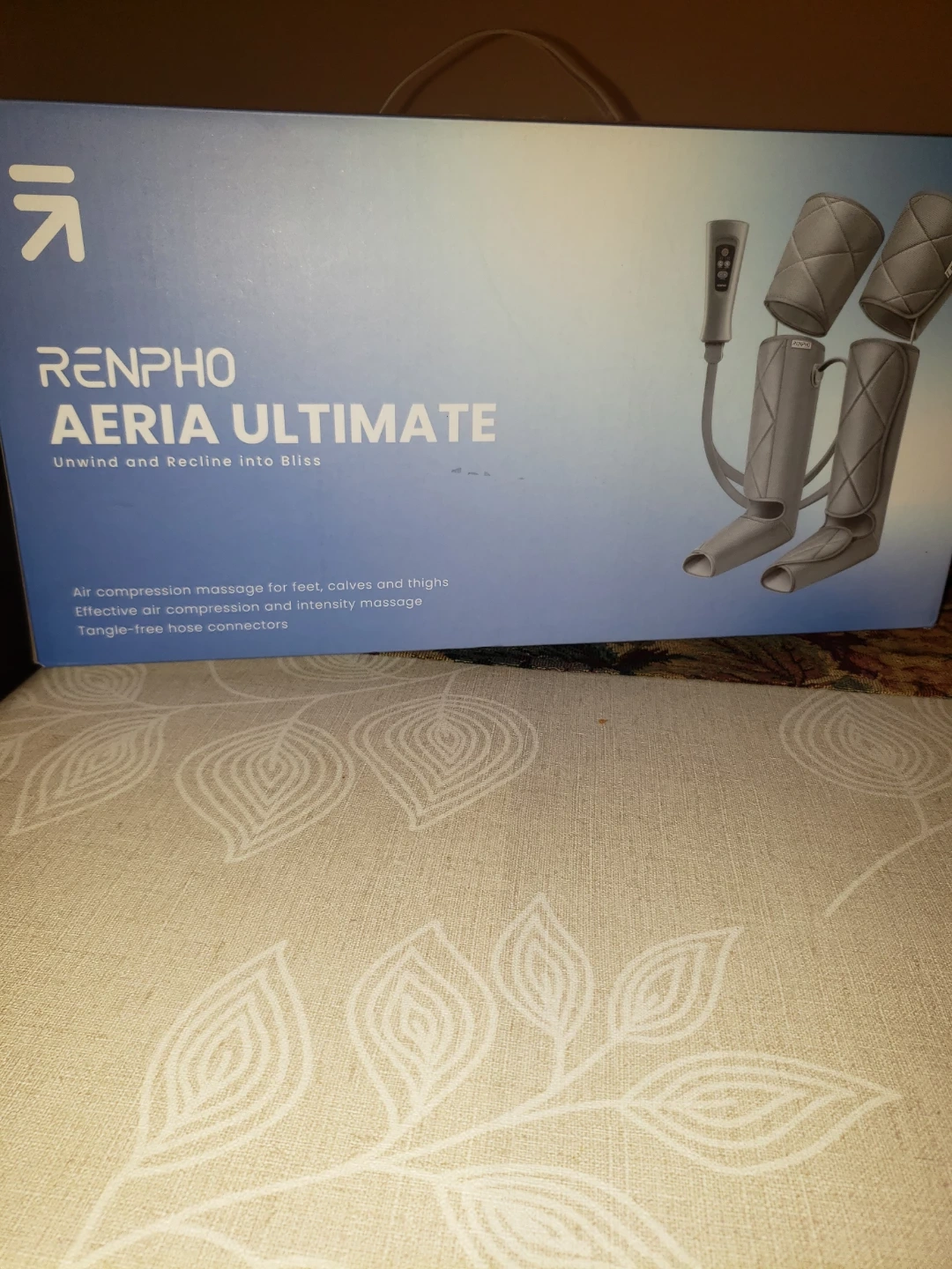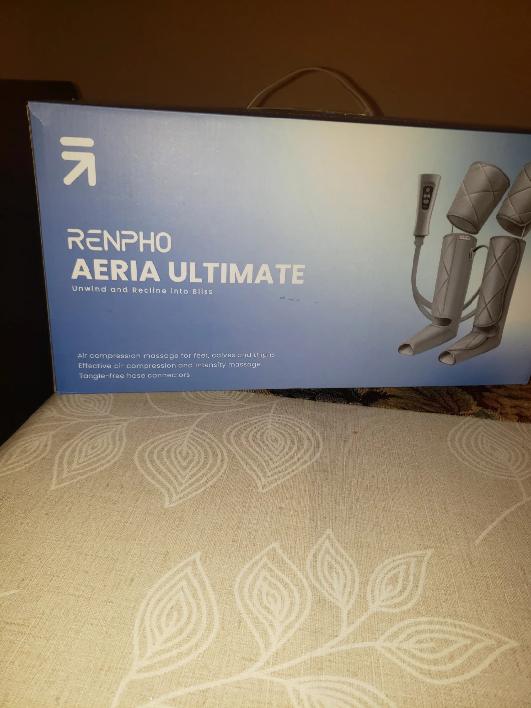 10Selling a brand new RENPHO Aeria Ultimate air compression massager! It's still in its original box and ready to help you unwind and recline into bliss. This massager provides air compression massage for your feet, calves, and thighs, offering effective air compression and intensity massage. It also features tangle-free hose connectors. Perfect for relaxation after a long day!