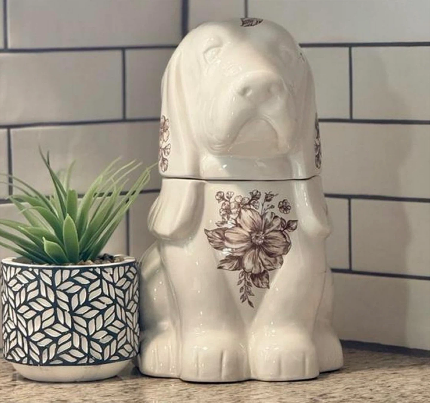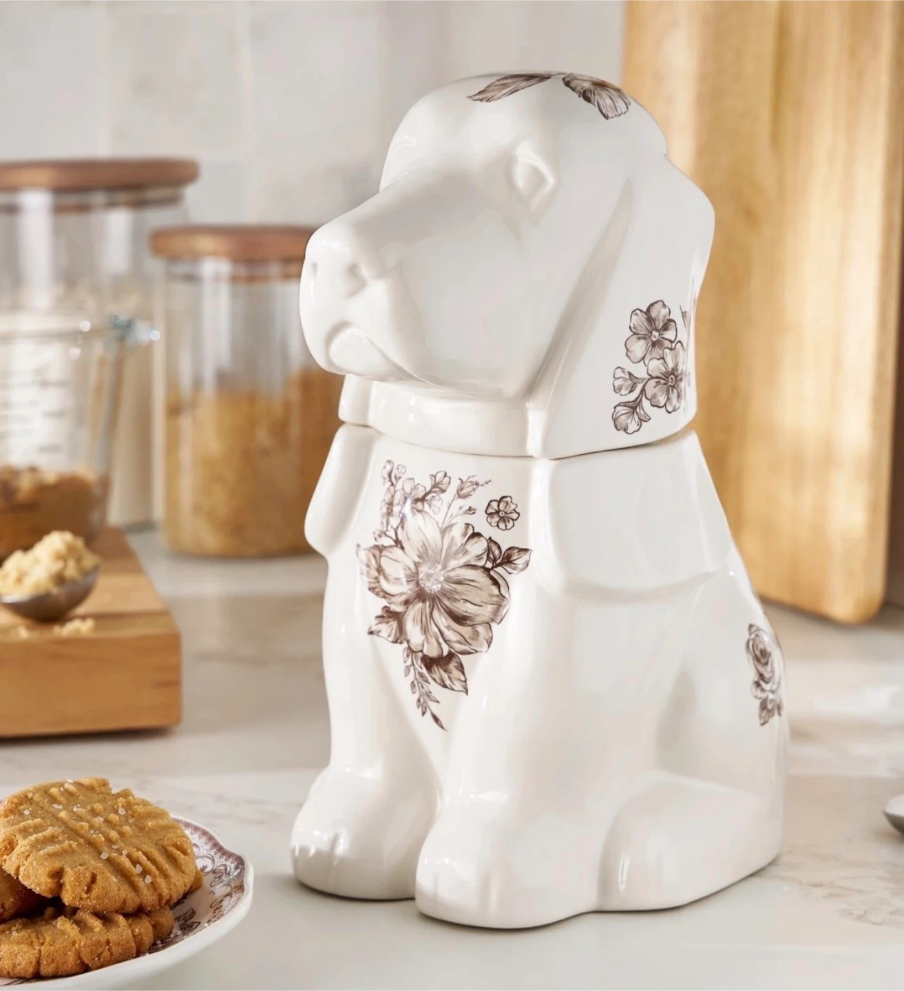 Ceramic Dog Jar with Floral Design Pioneer Woman