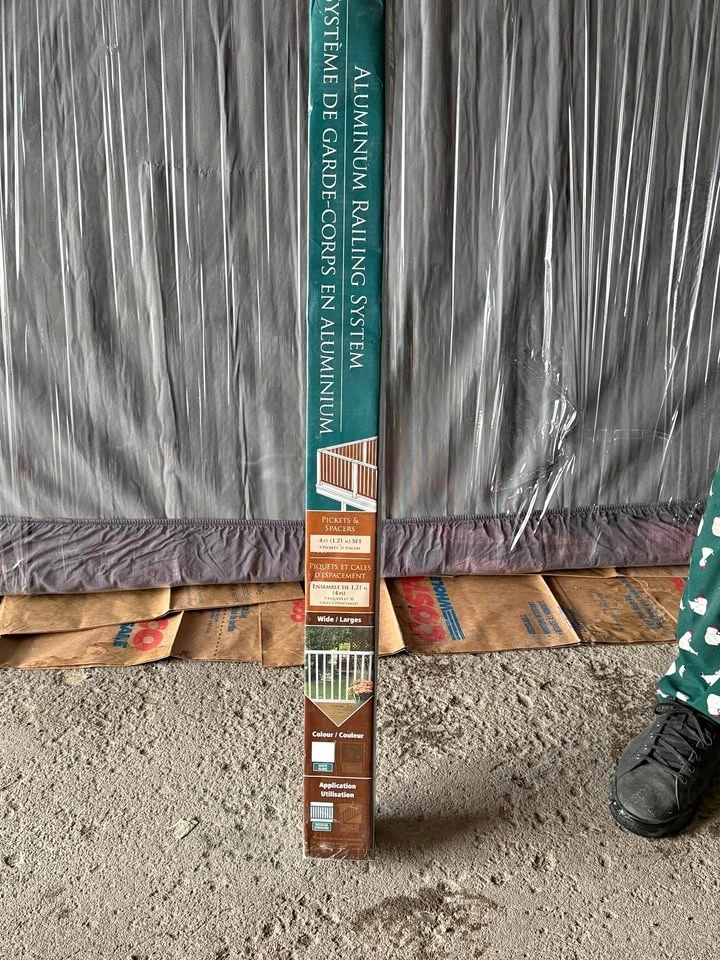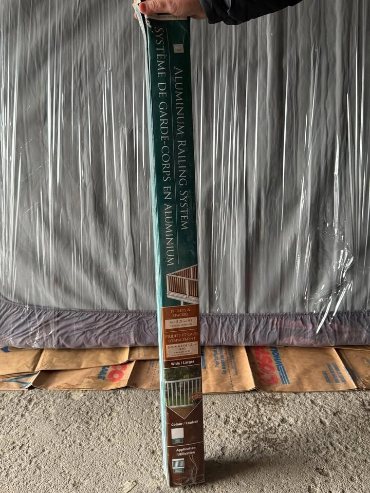 Brand new, still in the package. Selling because it's no longer needed. This aluminum railing system includes 9 of the 4ft (1.21m) pickets and 20 spacers. It's white and designed for regular application, making it easy to install.