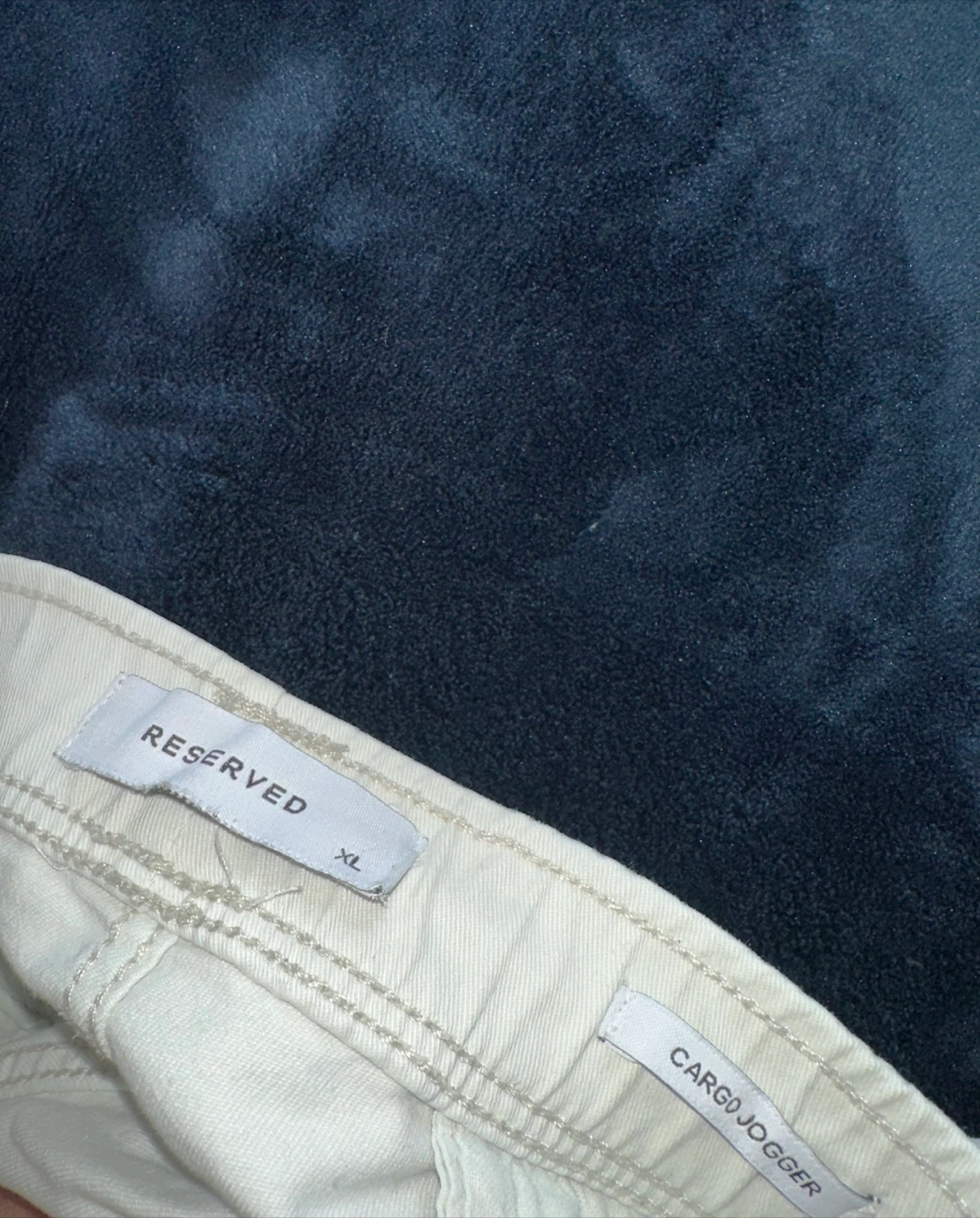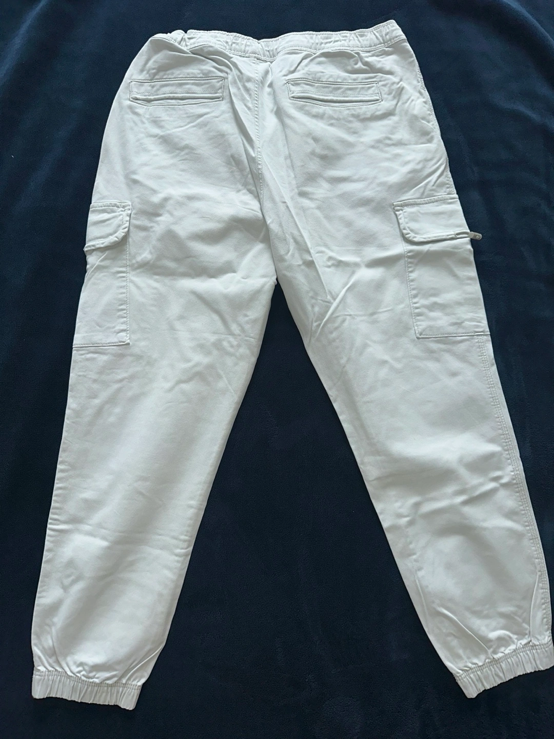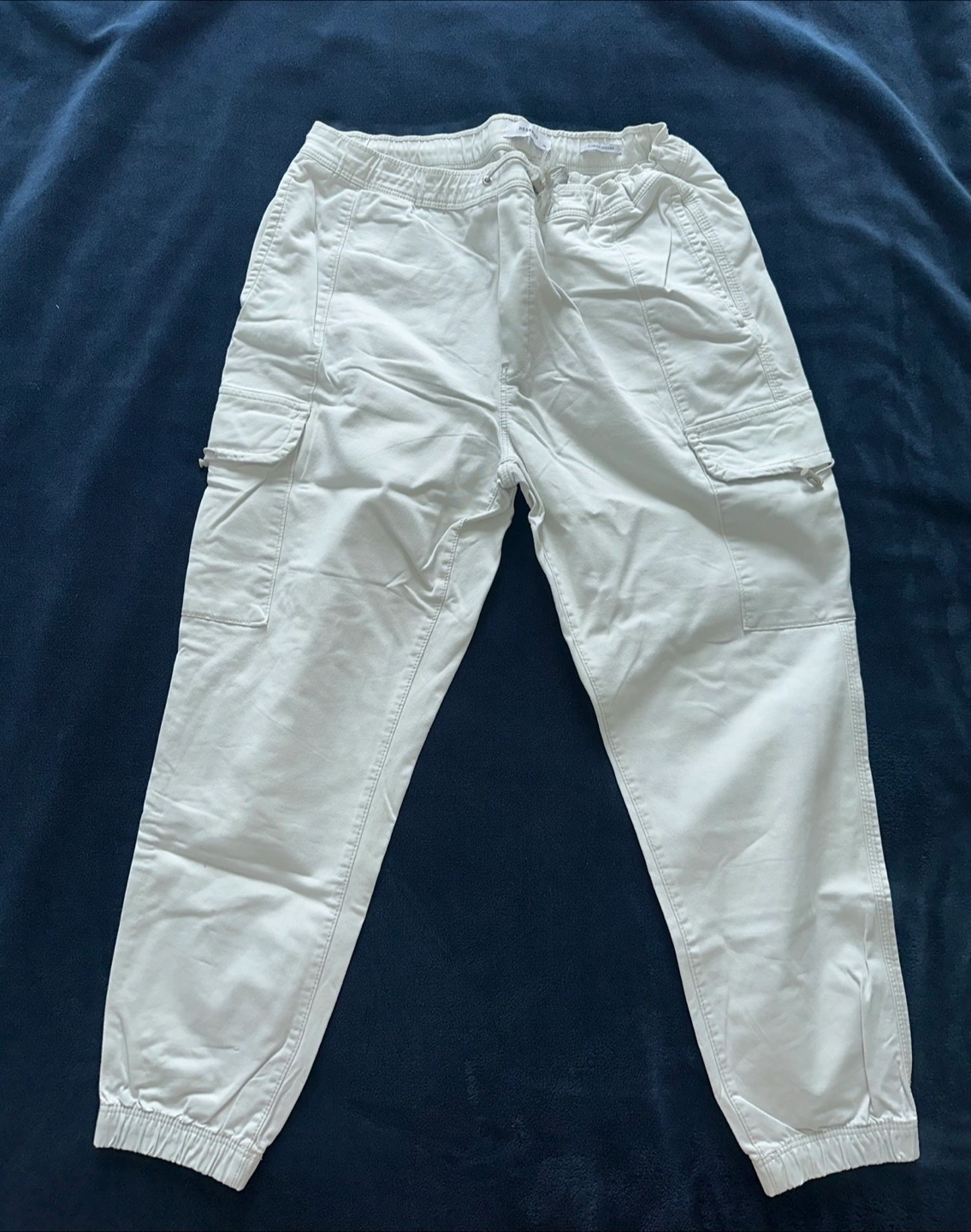 Men's off-white cargo joggers. Size XL. Elastic waistband and cuffs. Multiple pockets. Excellent condition.