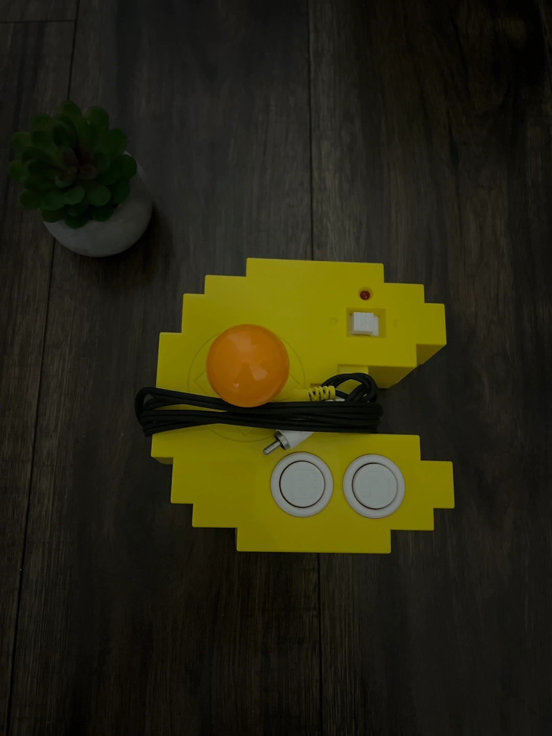 Yellow Pac-Man shaped joystick How it works : connect to the TV and enjoy retro pac-Man games Comes with 12 FREE classic games already available inside device
