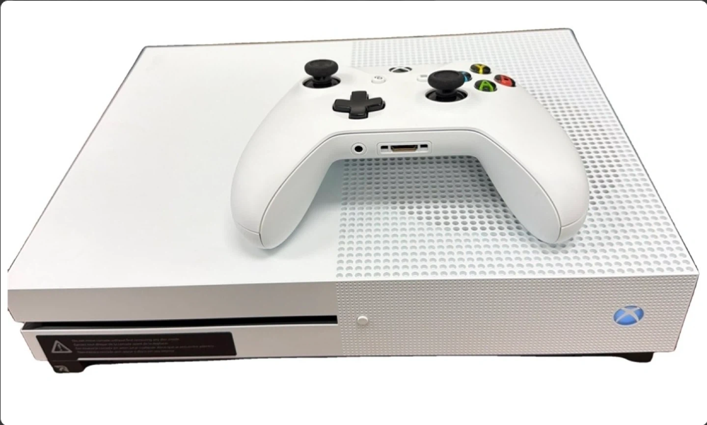 Xbox One S console bundle with 1TB storage. Comes with one white wireless controller. Includes the Halo 5: Guardians game. Original packaging included.
