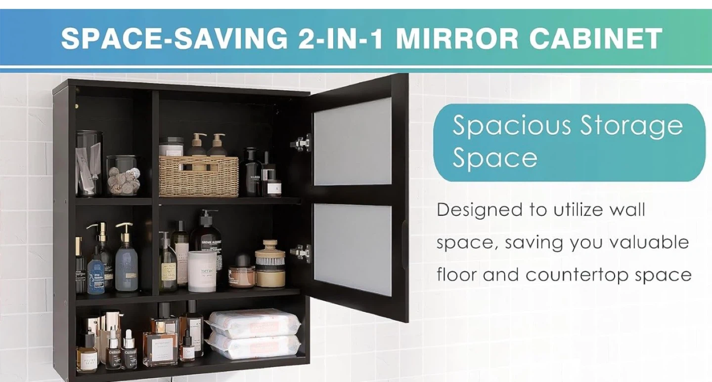 ★ SPACIOUS STORAGE SPACE: this medicine cabinet features a fixed top shelf, 2 shelves inside the doors and 1 open fixed shelf at the bottom giving you ample storage space. The middle layer shelf inside the door has 3 adjustable heights to meet your different storage needs. The open shelves allow you to quickly view and access the essentials for daily use