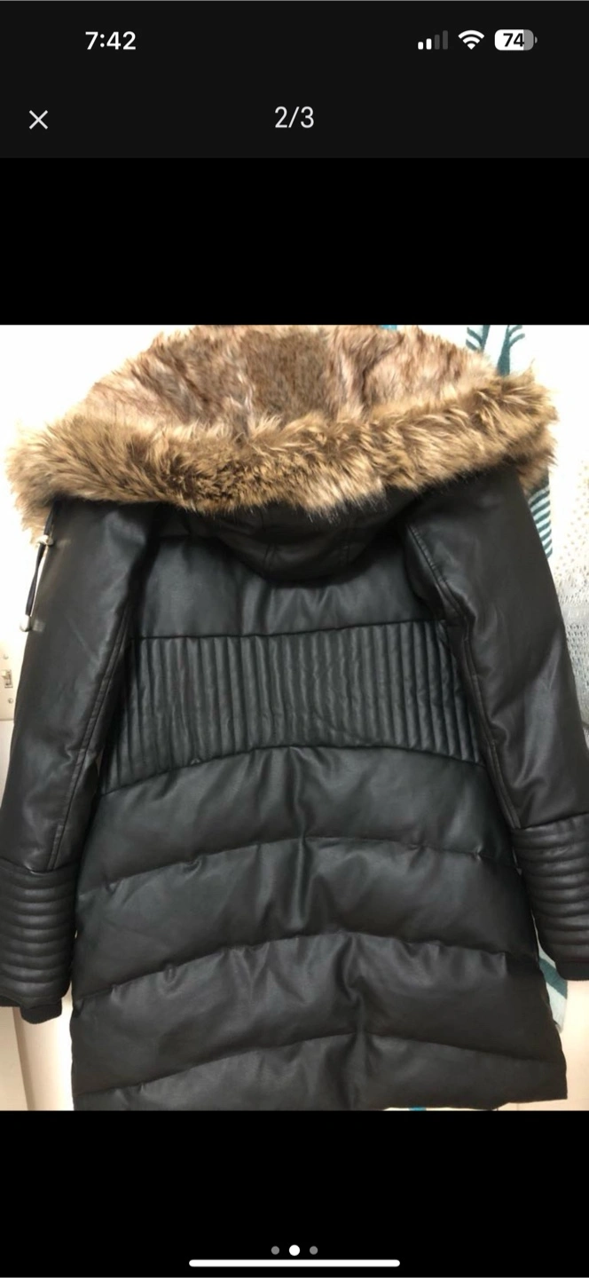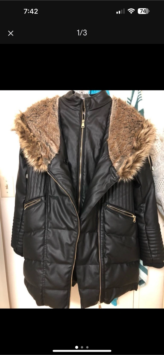 Winter jacket with a faux fur hood. Zips down the front. Featuring pockets and a quilted design. The jacket is a great choice for your next walk in the park.