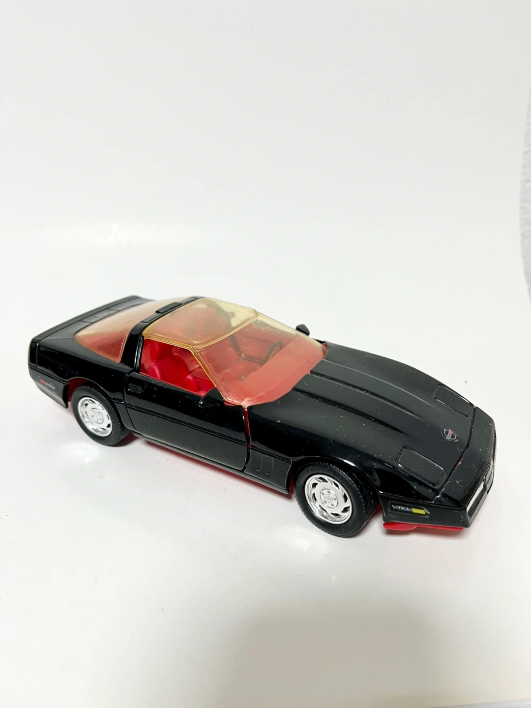 130Here's a cool Corvette C4 transformer toy car! It's black and red, and it can be converted from a car to a robot and back again. A fun toy for car enthusiasts and collectors alike