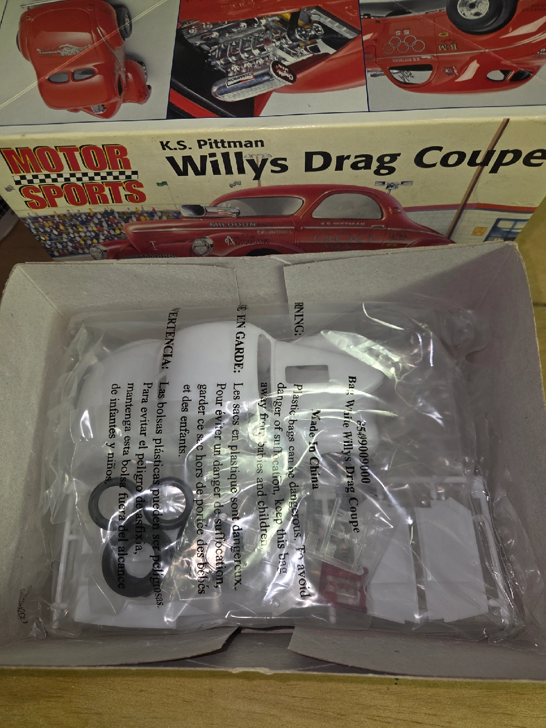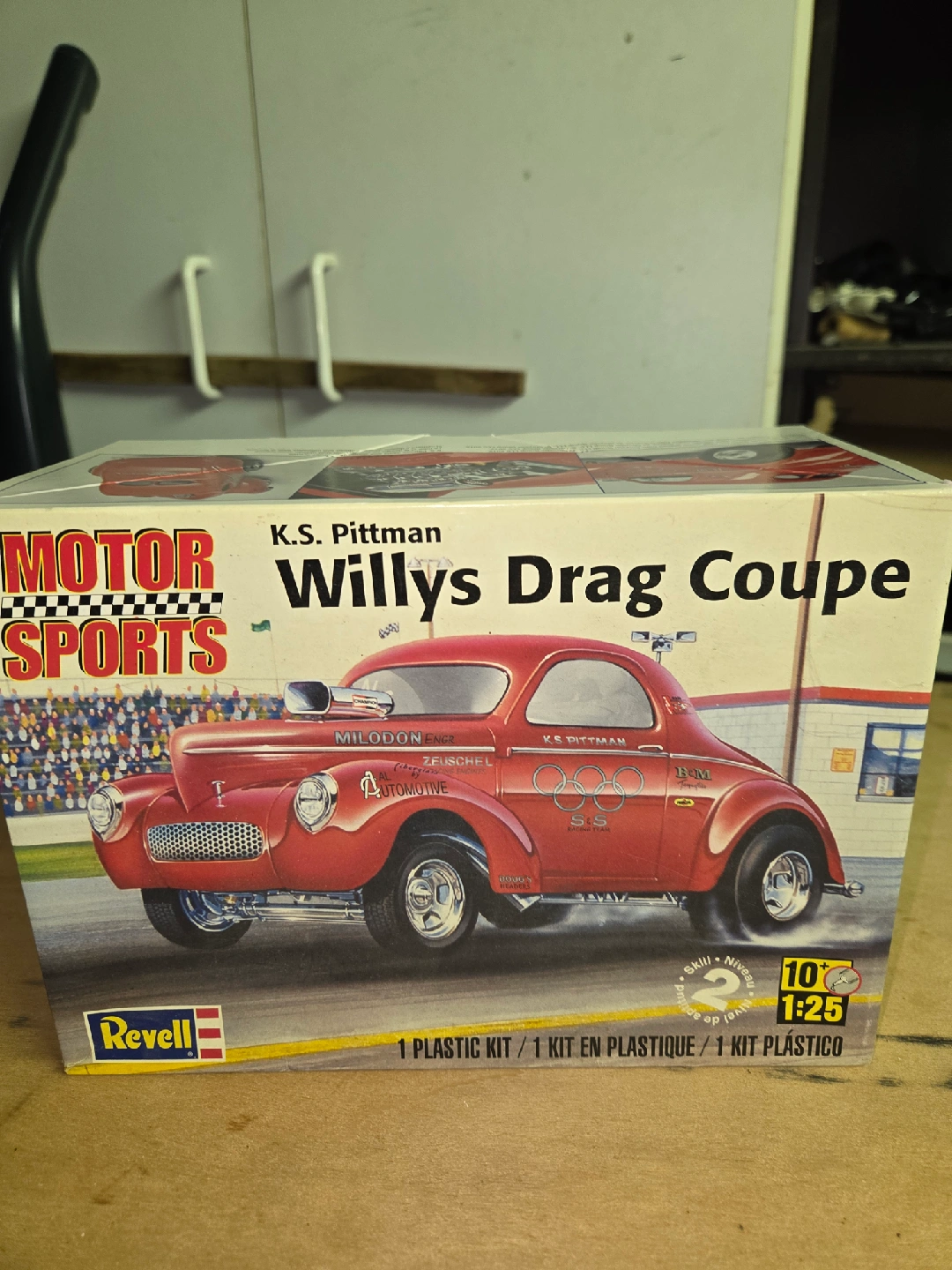 Selling a brand new Revell K.S. Pittman Willys Drag Coupe model kit! It's still sealed in the box and ready for assembly. A great project for model car enthusiasts!