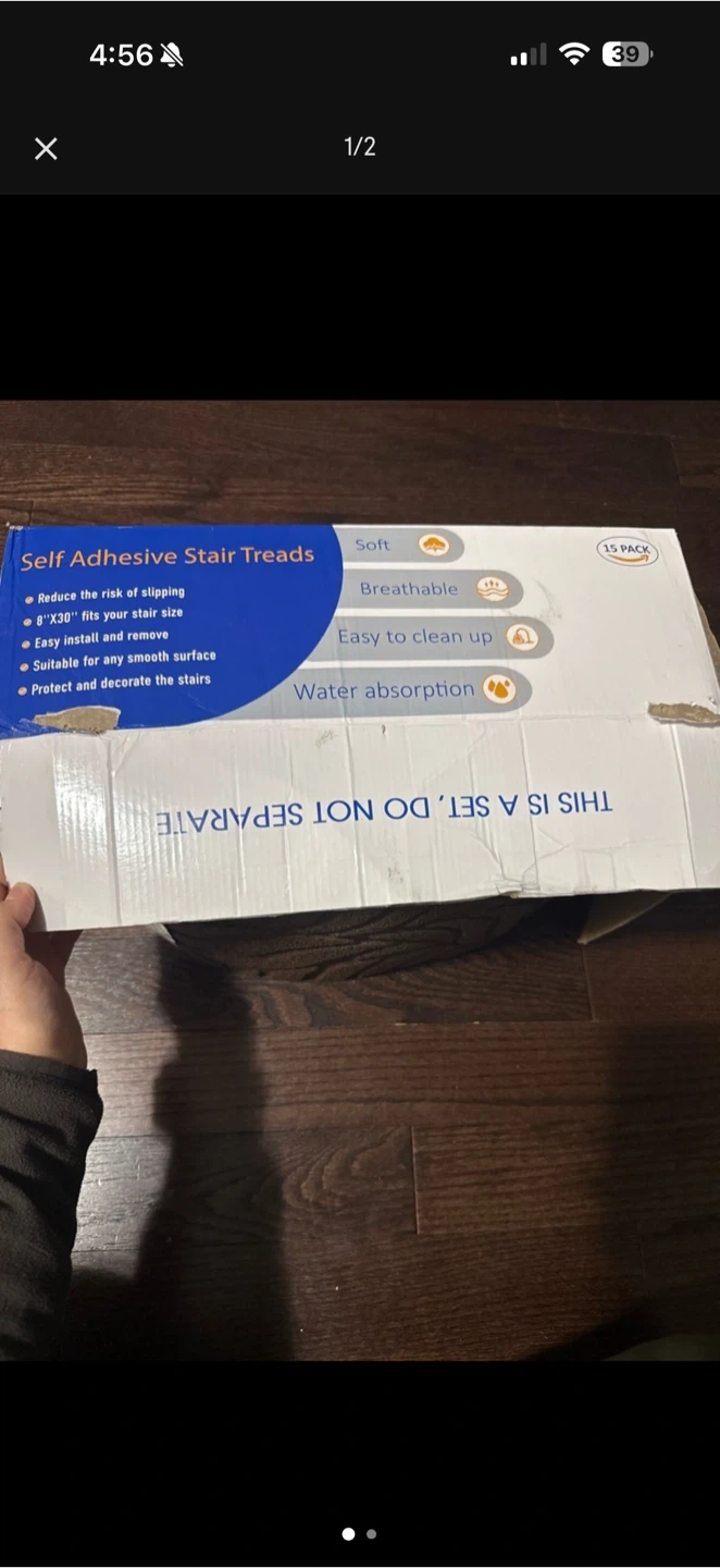 These self-adhesive stair treads are soft, breathable, and easy to clean. They reduce the risk of slipping and are suitable for any smooth surface. Includes 15 treads, each measuring 7"x30".