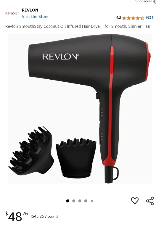 Show allRevlon SmoothStay Coconut Oil Infused Hair Dryer