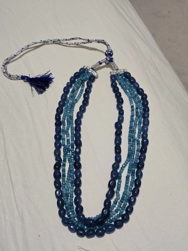 This stunning beaded necklace features multiple strands in shades of blue, creating a beautiful layered look. It's a used item that has been well-maintained and is ready to add a pop of colour to your wardrobe. I am pricing it at $35 CAD. Similar necklaces are typically listed on Kijiji for between $30 and $40, so this is a fair price. If the ad is still up, the item is still available.