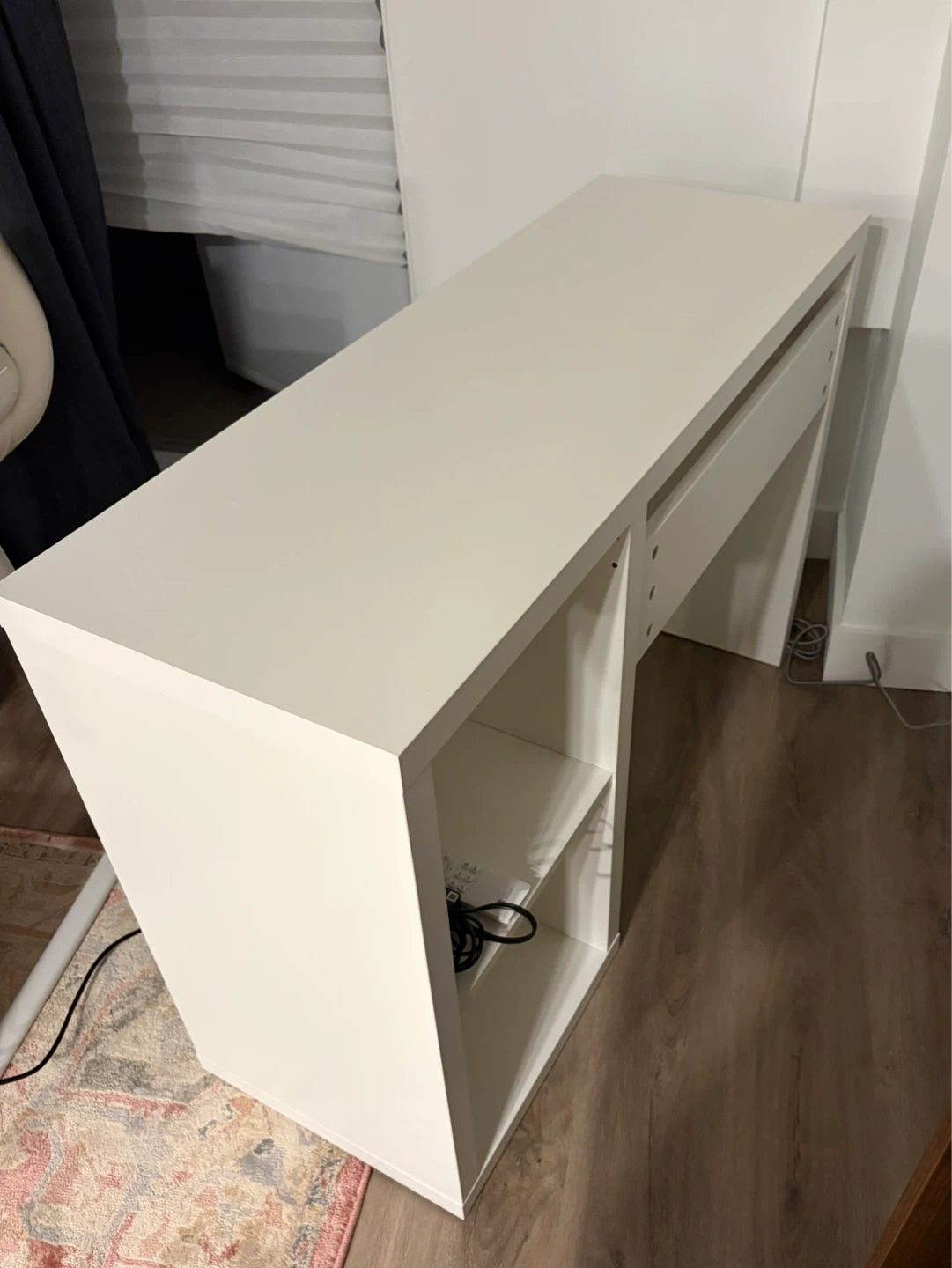 White IKEA KULLAX desk with built-in shelving on one side. Clean and functional. Already assembled. No flaws.