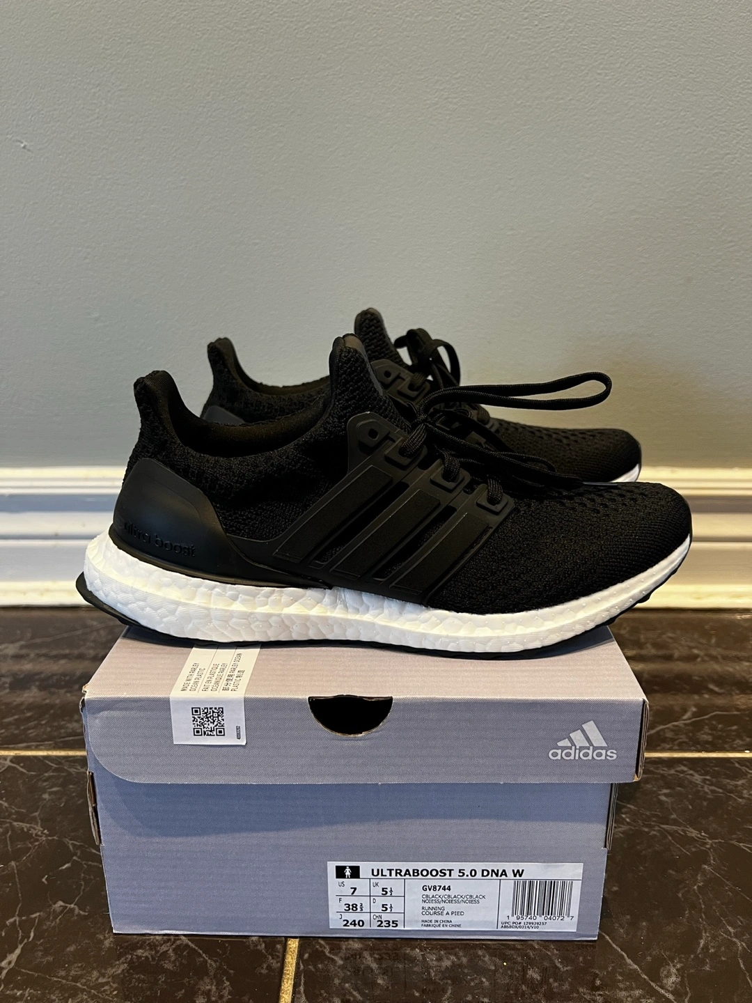 Brand new in box Adidas ultraboost 5.0 DNA. SIZE 7 women. Black with White soles. Never used. $160