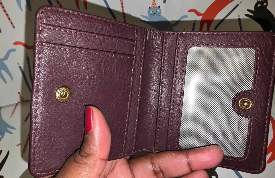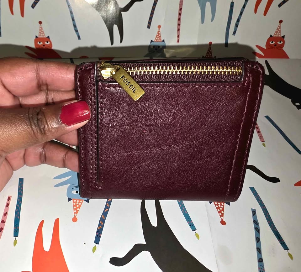 Beautiful maroon/burgundy compact wallet with everything you need including a section to put your change, and cards.