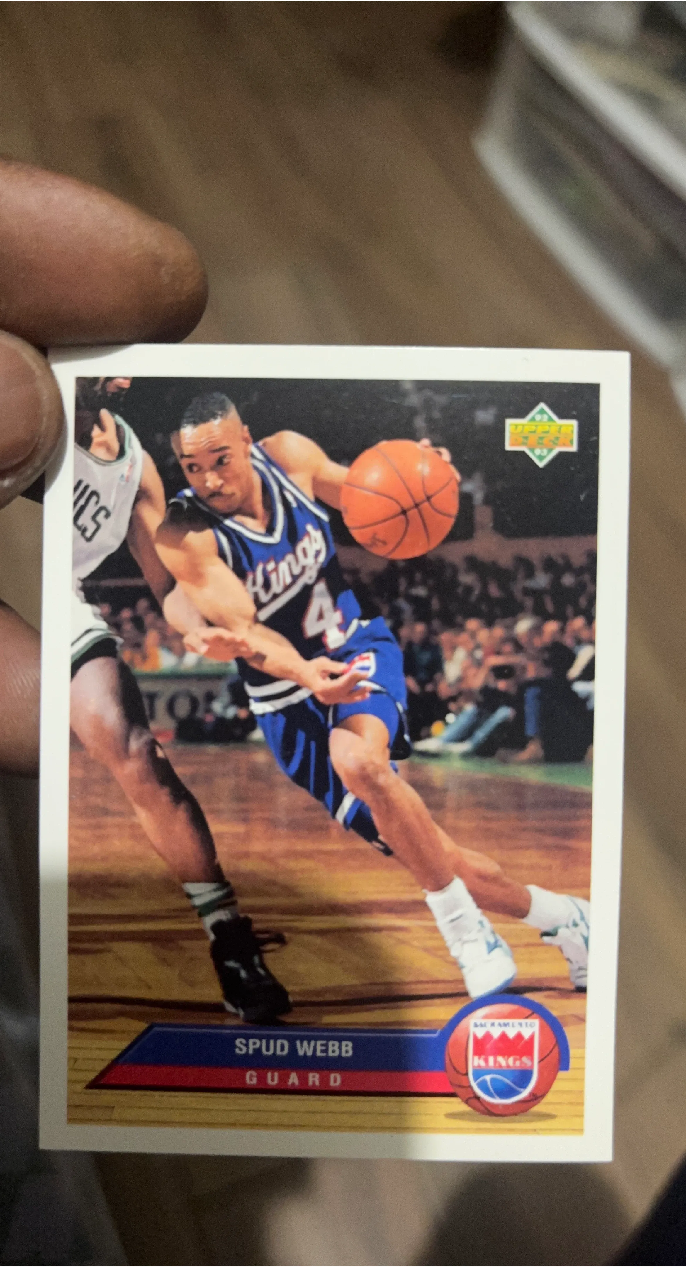 This is a 1992 Upper Deck basketball trading card featuring Spud Webb. The card shows him playing for the Sacramento Kings. It's a great collectible for basketball fans!