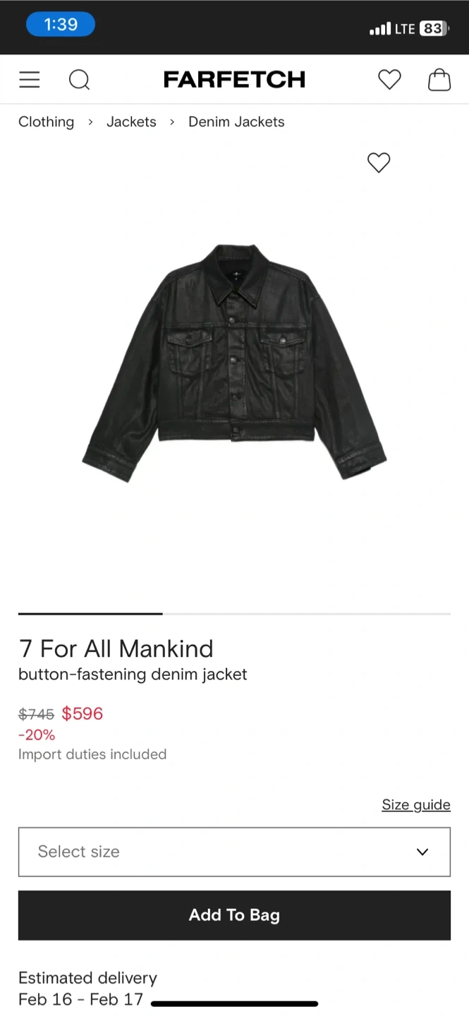 7 For All Mankind Black Denim Jacket