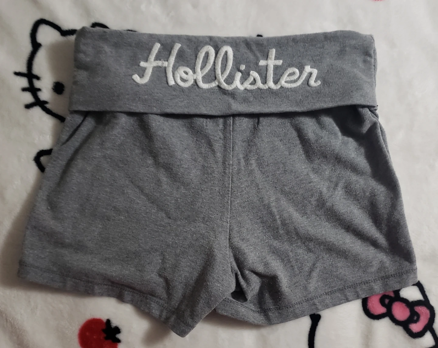 Selling a pair of Hollister gray shorts. Used a little bit and has a weird sewing job from pervious owener. Size S even tho it says large. Selling cus they dont fit anymore.
