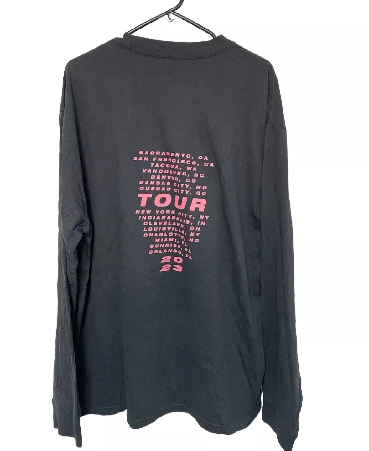 Black long sleeve T-shirt with graphic print on the front and tour dates on the back. Size XL.