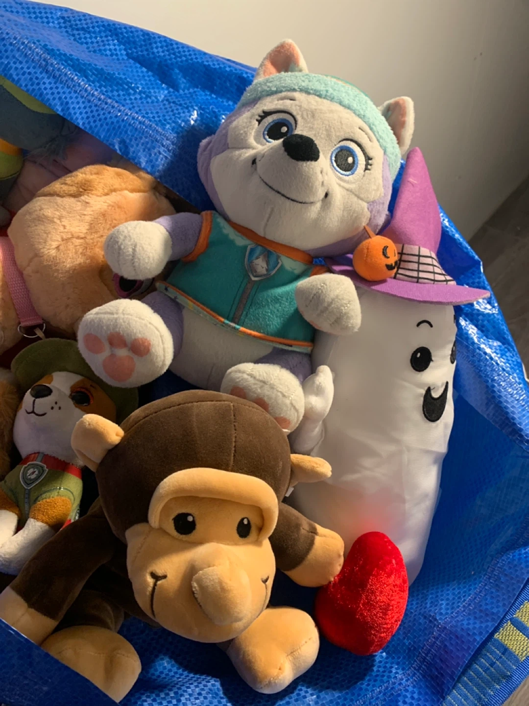 Bundle of assorted plush toys, including characters from Paw Patrol and other popular franchises. They're soft and cuddly. Great for playtime or decor!