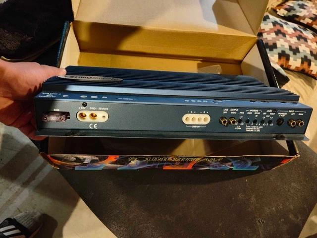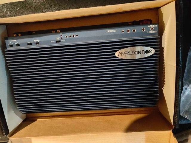 For sale is a Soundstream Rubi1000-2, a powerful 1000-watt car amplifier. This amp features a fully regulated MOSFET power supply and several advanced technologies. Key specifications include: Fully regulated, MOSFET power supply, RUBI™, STACT™, Hawkins Bass Control™, Harmonic Bass Alignment™, Drive Delay III™, IDI™, Power Grid™, Auto High Current™, Trident™ amplifier protection topology, Differentially Balanced RCA inputs, continuously variable 24dB low-pass crossover (55Hz-250Hz), and continuously variable 12dB High-pass crossover (70Hz-160Hz). Amp is in great condition. Comes in original box with owner's manual. Old school car audio.