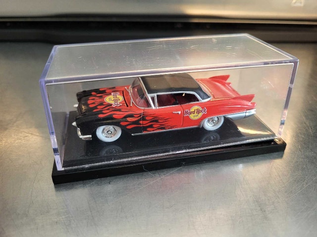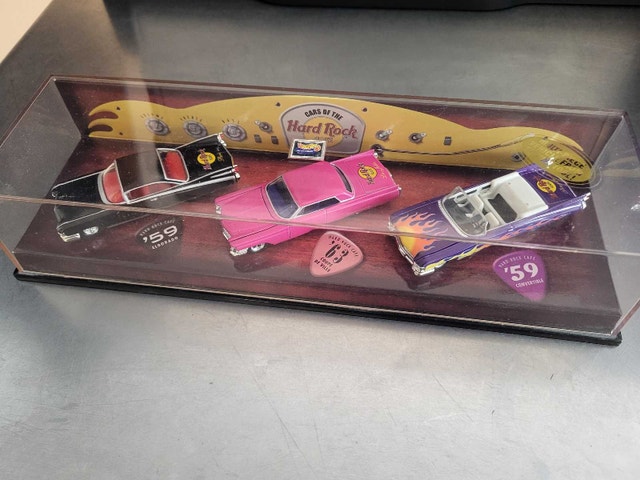 Selling a collection of 4 Hot Wheels cars. Includes two special edition Hard Rock Cafe models, a Designer Dreamz set, and a Sunkist delivery truck. All are die-cast metal with hinged hoods. Feel free to message if you have any questions!
