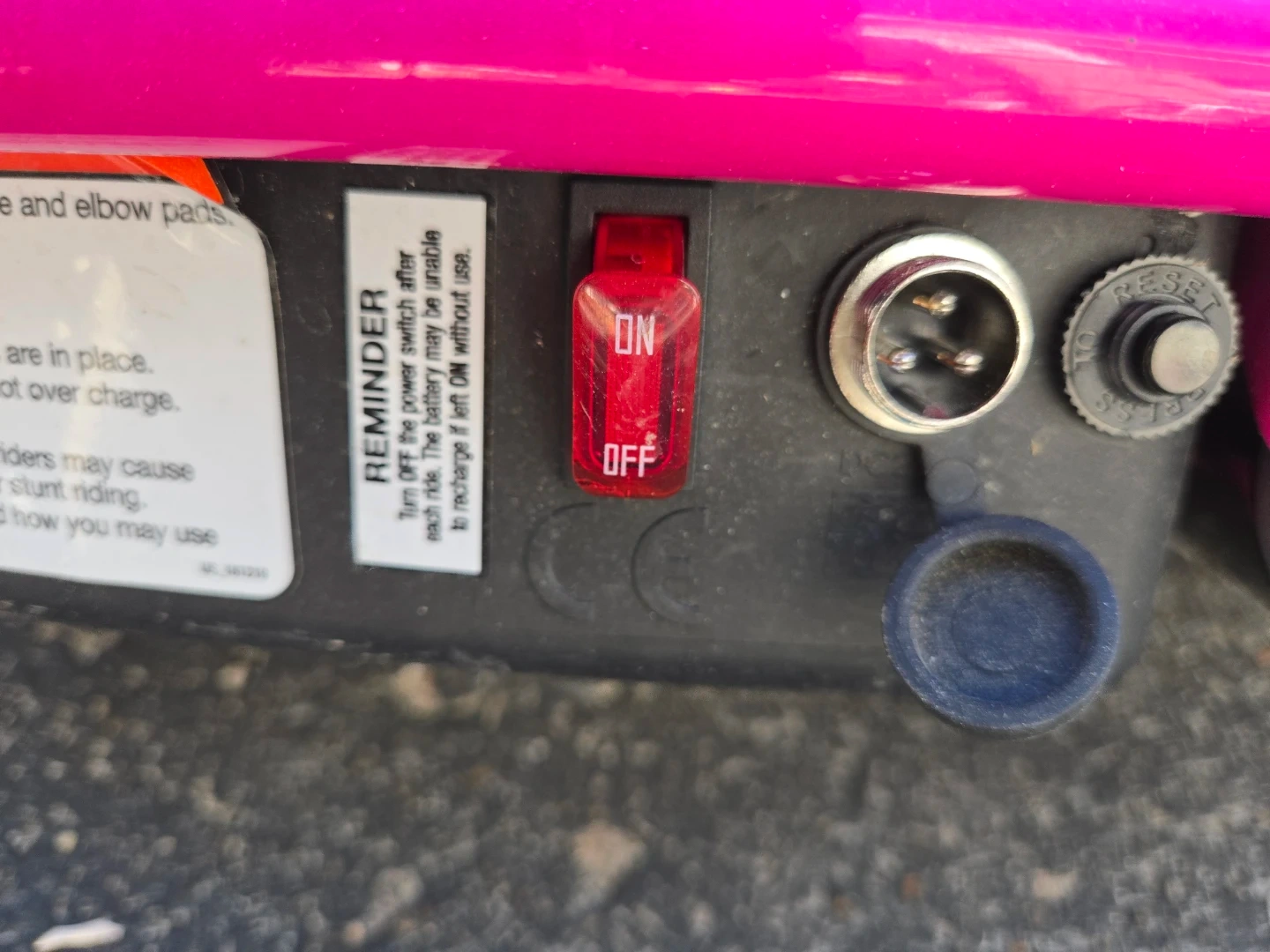 Something happened to the on/off switch as it doesnt stay "on" it glitches. I can't be bothered to try and fix as daughter has new bike and doesnt want to use the scooter anymore anyway.