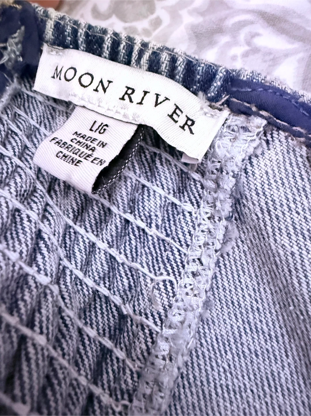 Moon River Denim Drop Waist Mixed Media Dress