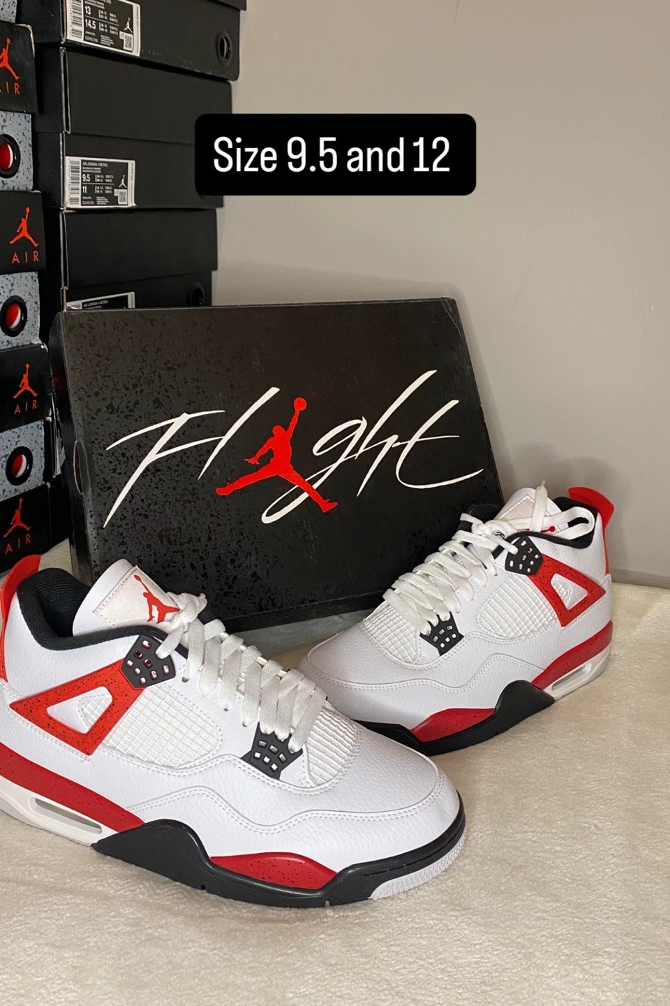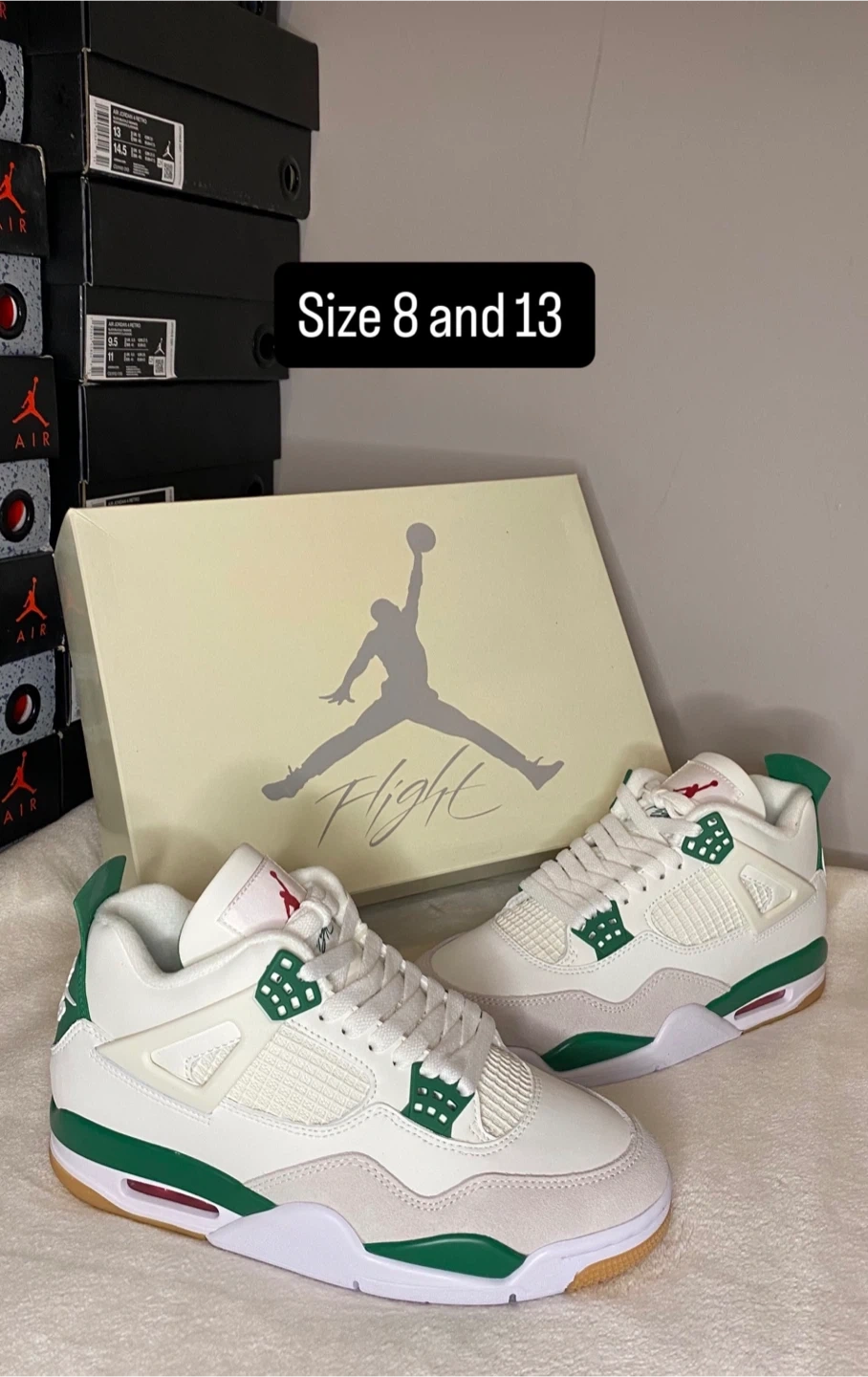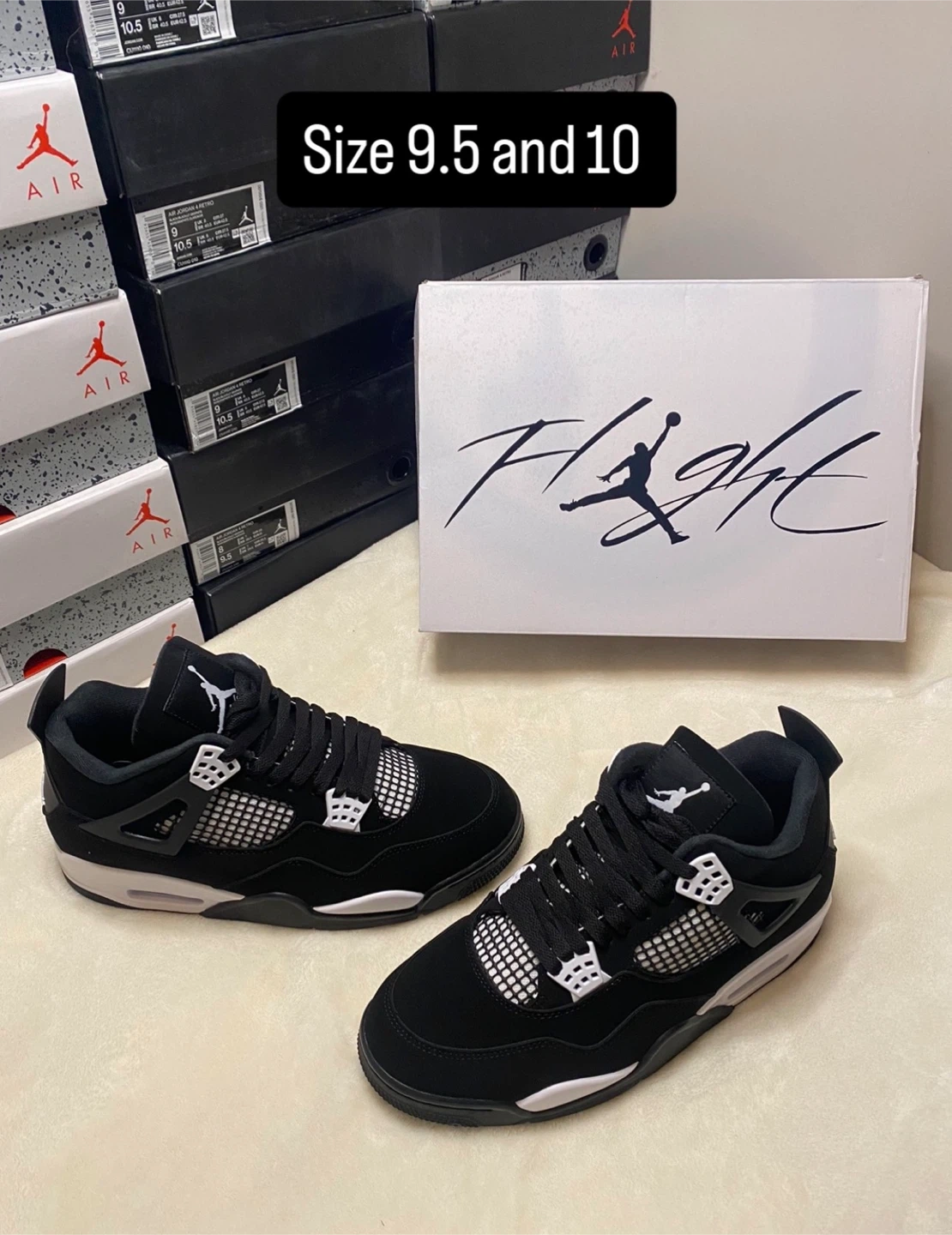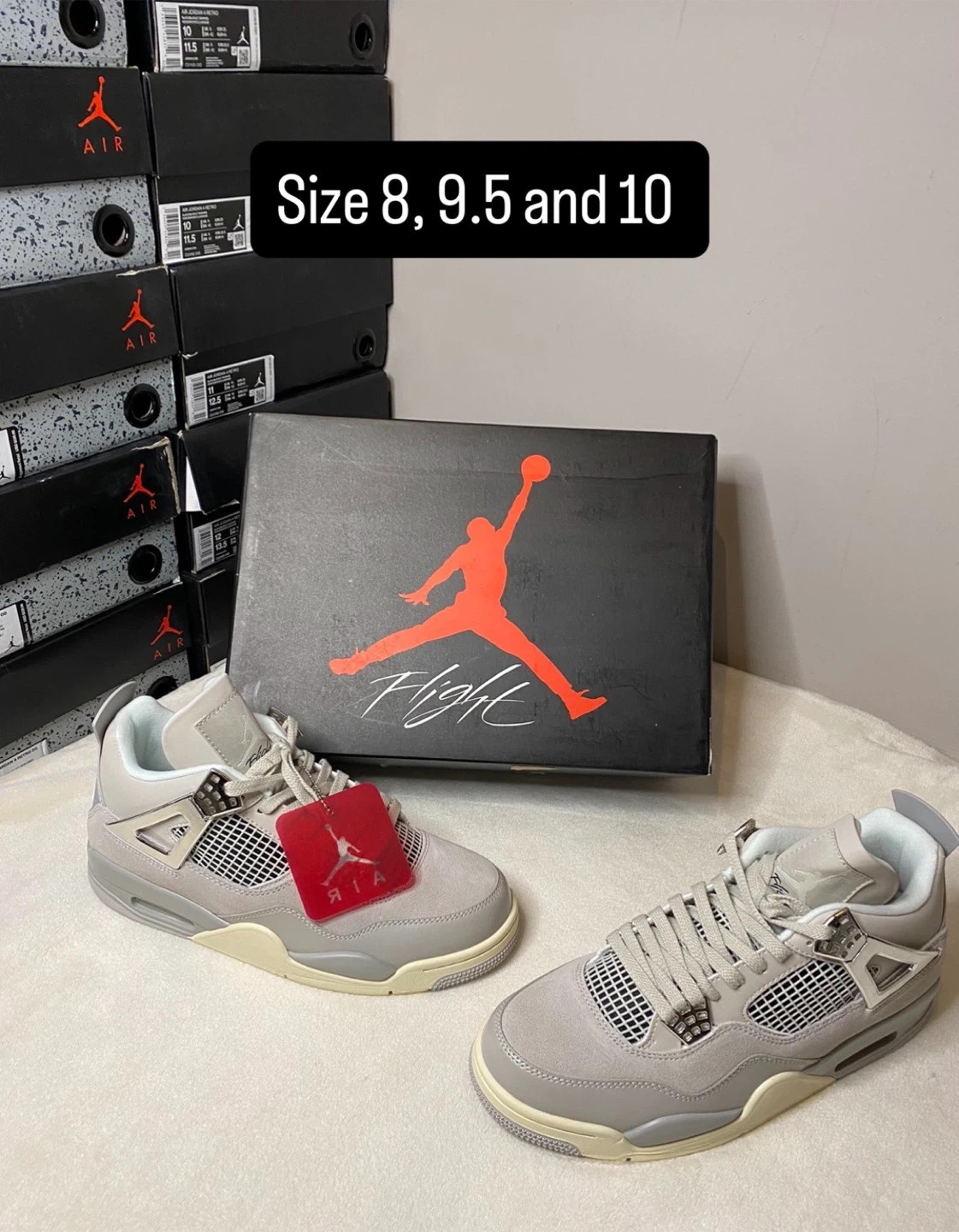 These iconic Air Jordan 4 Retro sneakers are available in multiple colourways. They feature a durable construction and classic design elements. Available in sizes 8, 9, 9.5 and 10.