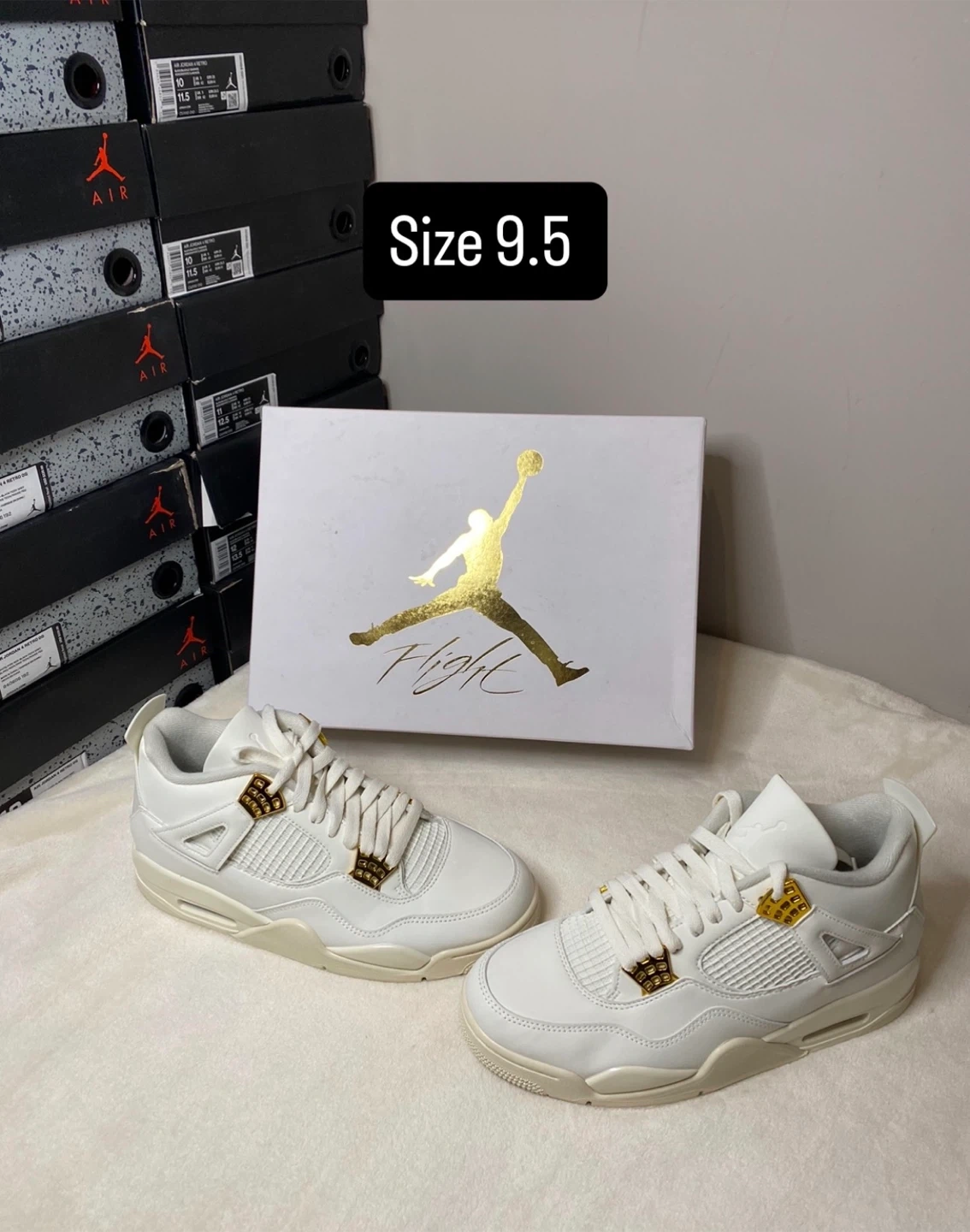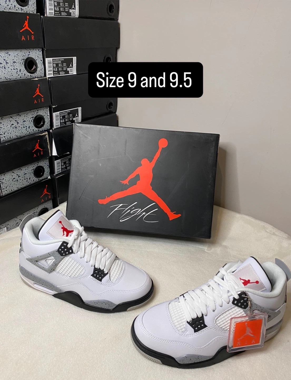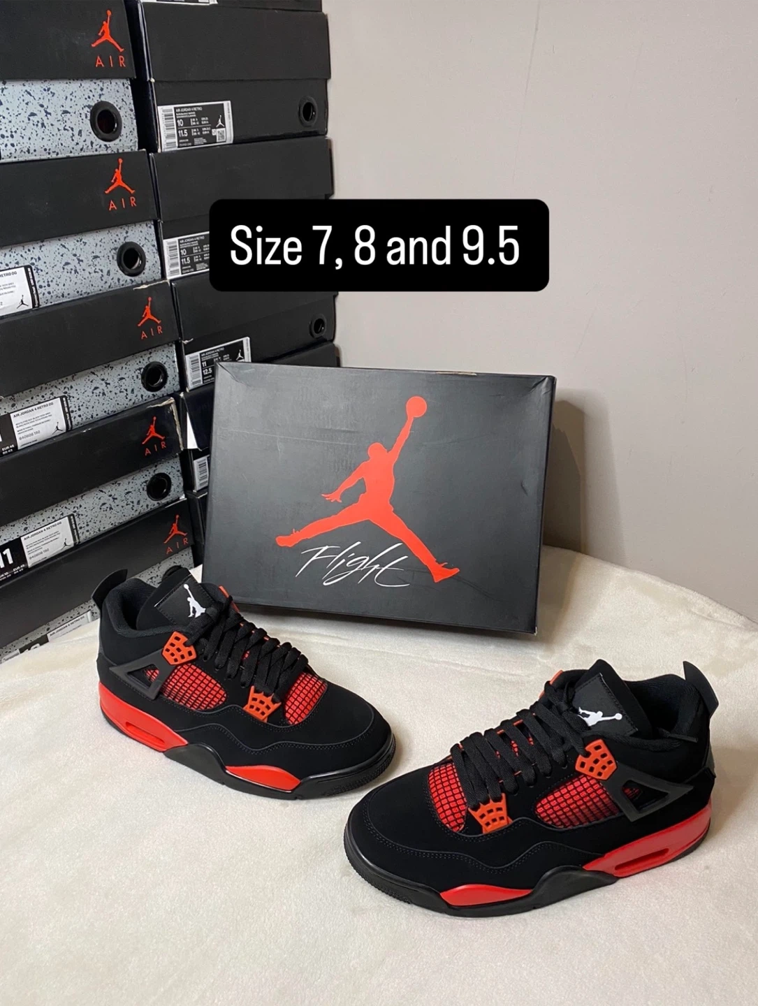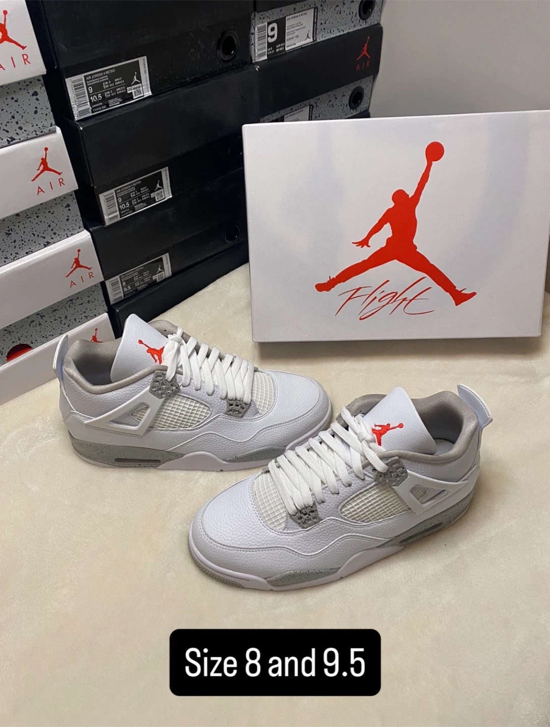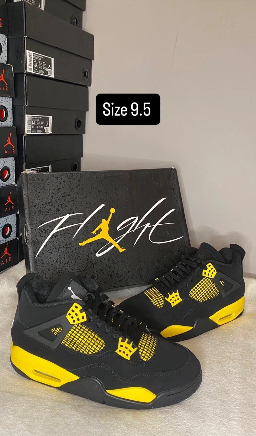 These iconic Air Jordan 4 Retro sneakers are available in multiple colourways. They feature a durable construction and classic design elements. Available in sizes 8, 9, 9.5 and 10.