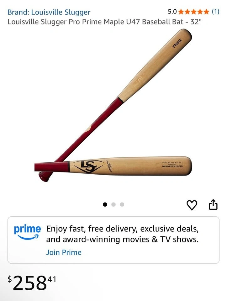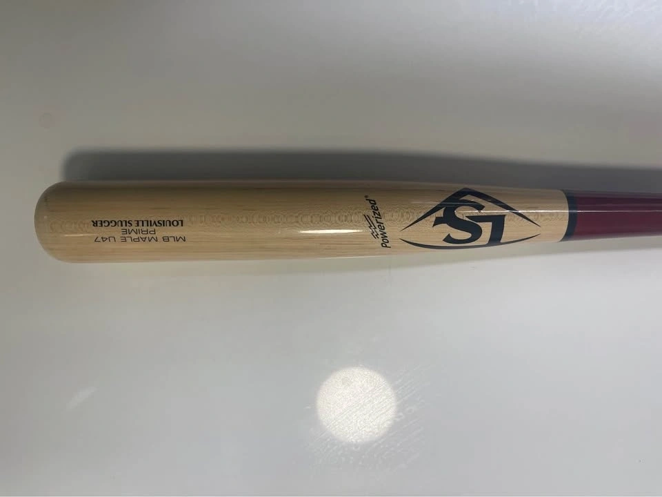Maple wood pro bat! This is a Louisville Slugger Pro Prime Maple U47 baseball bat. It is 32 inches long. Brand new, unused. The only detail is a small paint chip at the bottom (handle), see photo. Retails for $300.
