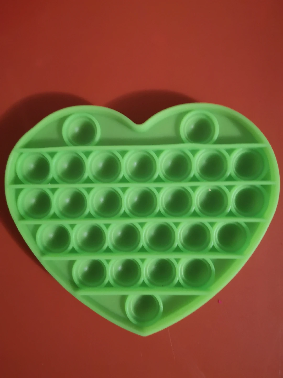 Selling a green heart-shaped Pop It fidget toy! It's in great condition and perfect for stress relief or just some fun fidgeting