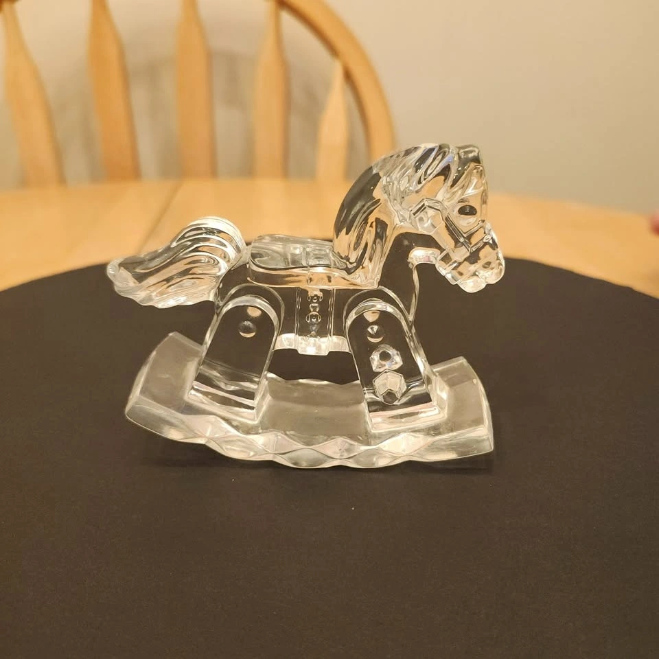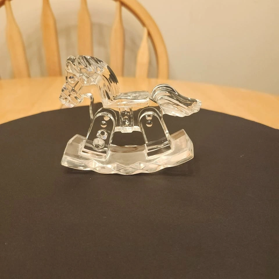 This rocking horse is smooth to touch and in wonderful condition. There are no chips, cracks or scratches. It may be crystal, it may be art glass, but whichever it is, it's a great accent to the decor in the nursery, or elsewhere in your living area. Approximate Measurements: 3.5" Height, 4" Length, 1.5" Width (across base). $5. Cash only. Pick up in Varsity, NW Calgary. Check out my other listings for more items available!