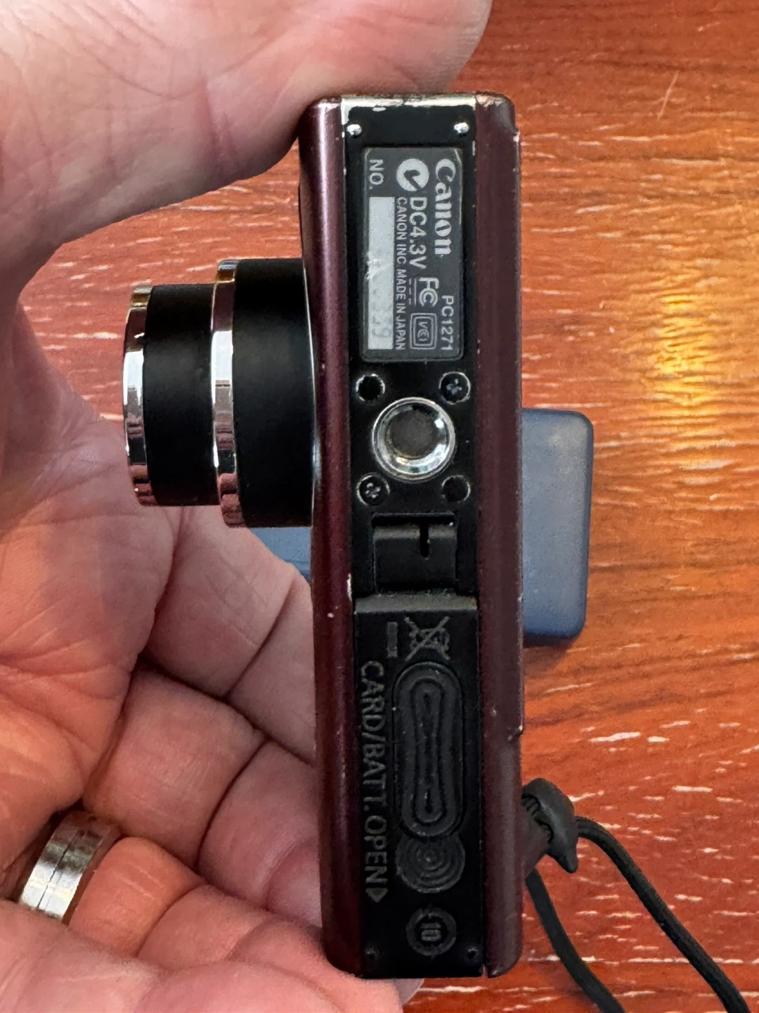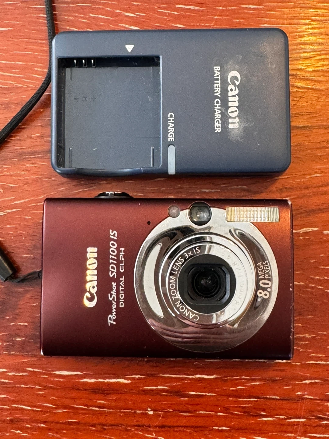 Canon PowerShot SD1100 IS Digital ELPH camera in brown. Features an 8.0 megapixel sensor and 3x optical zoom. Includes a battery charger.