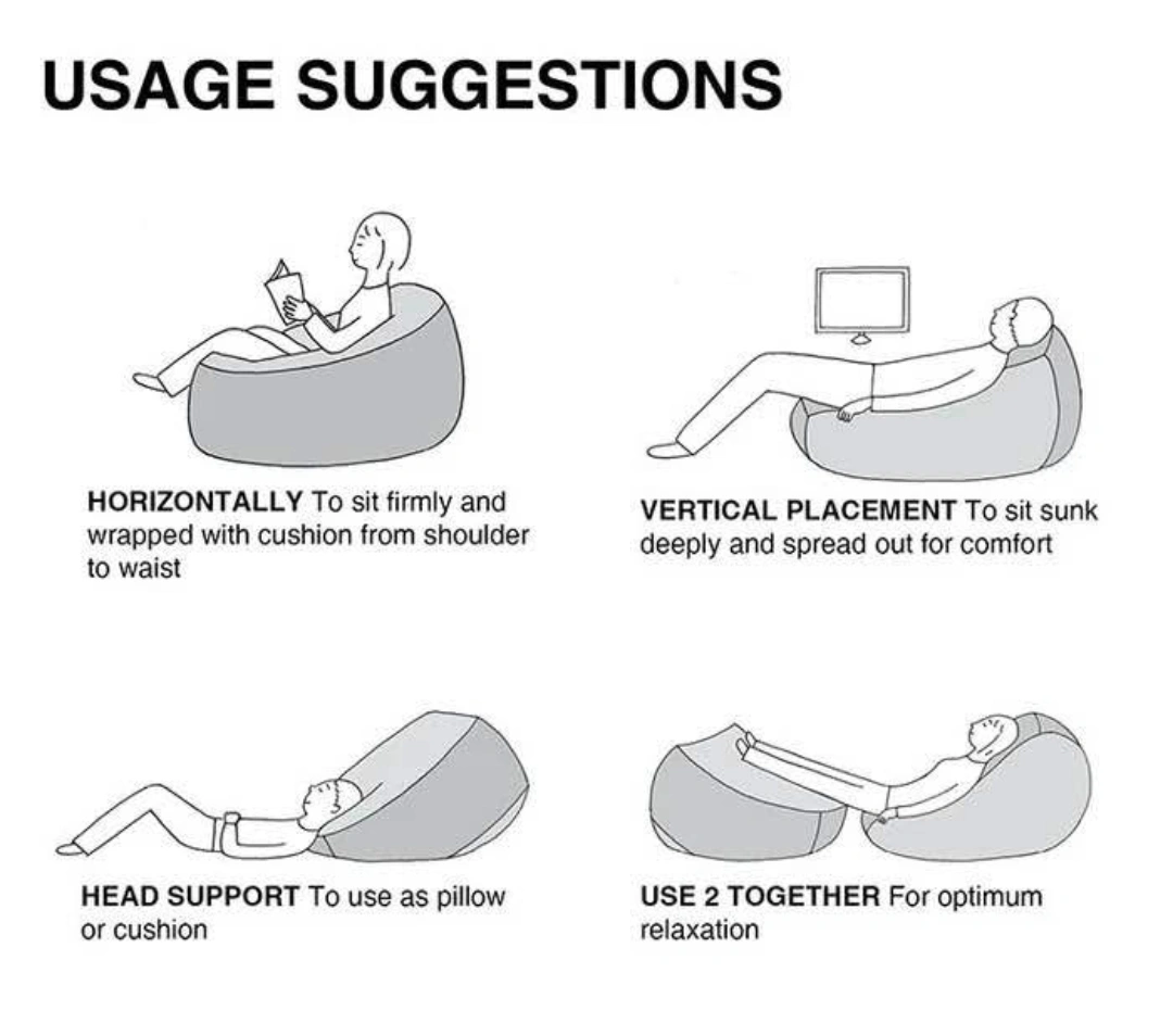 This is MUJI’s famous Body Fit Cushion — an oversized bean bag chair designed to mold to your body for extremely comfortable lounging. Perfect for reading, watching TV, gaming, or relaxing.