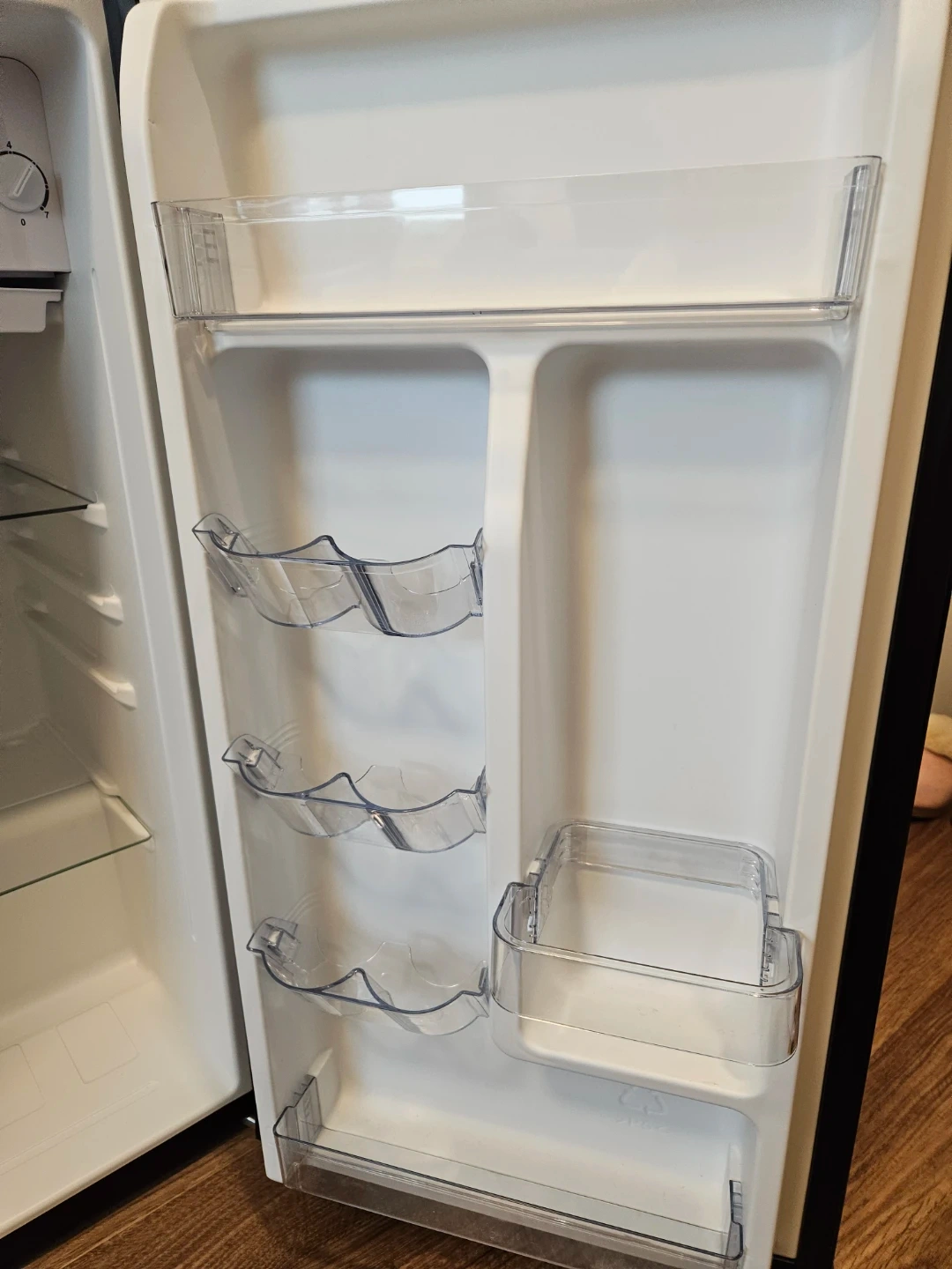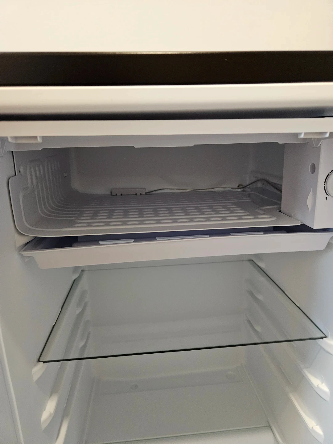 Mini fridge in perfect condition. Only used for 2 years in a dorm. Works perfectly! Glass shelves (removable), adjustable temperature, chiller compartment. I have the instruction manual as well. Selling because I'm moving and don't need it anymore. Perfect for dorms, offices, and more!