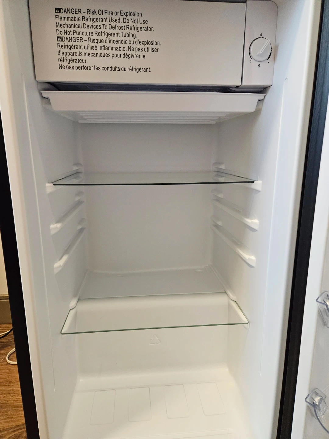Mini fridge in perfect condition. Only used for 2 years in a dorm. Works perfectly! Glass shelves (removable), adjustable temperature, chiller compartment. I have the instruction manual as well. Selling because I'm moving and don't need it anymore. Perfect for dorms, offices, and more!