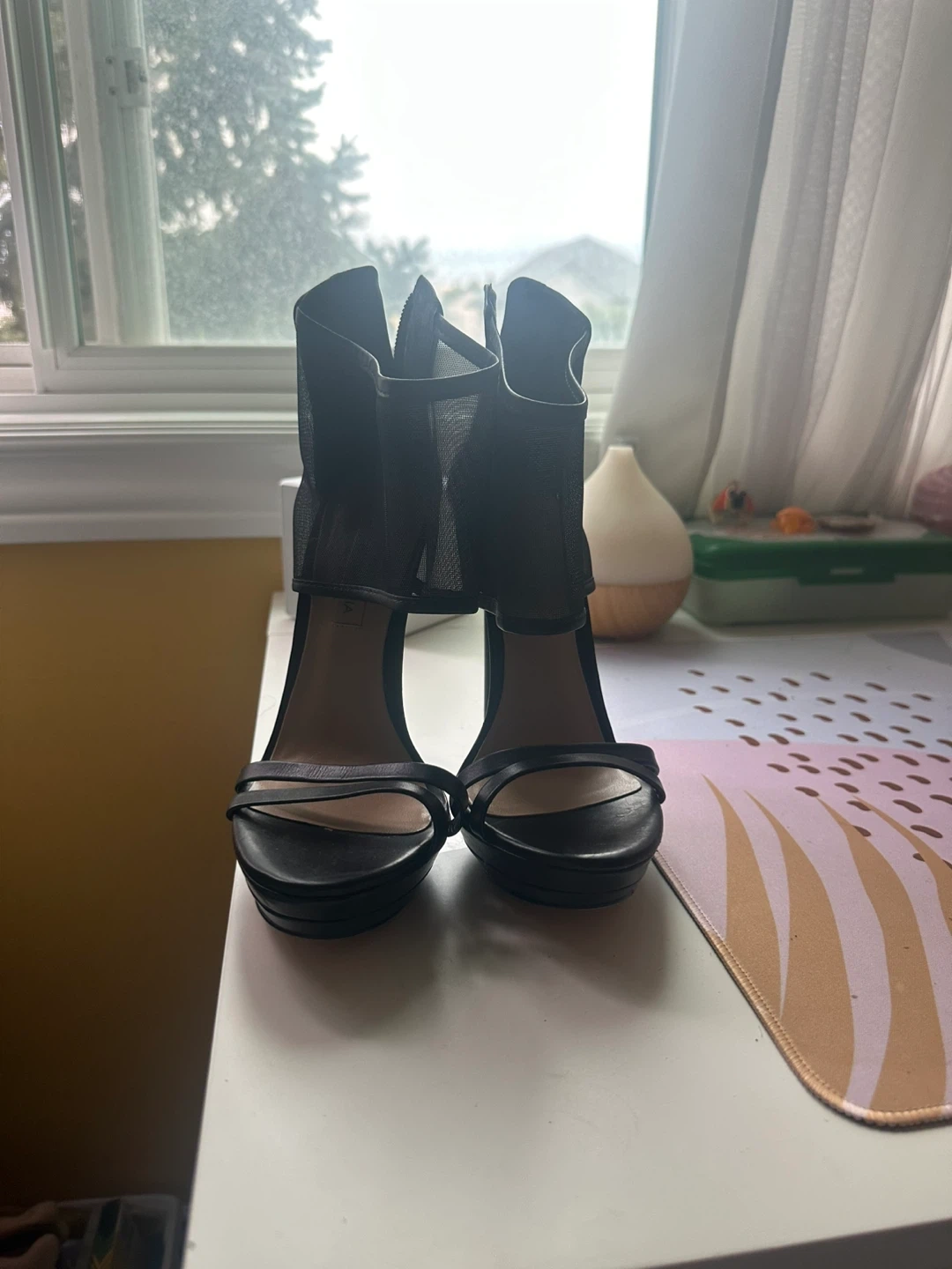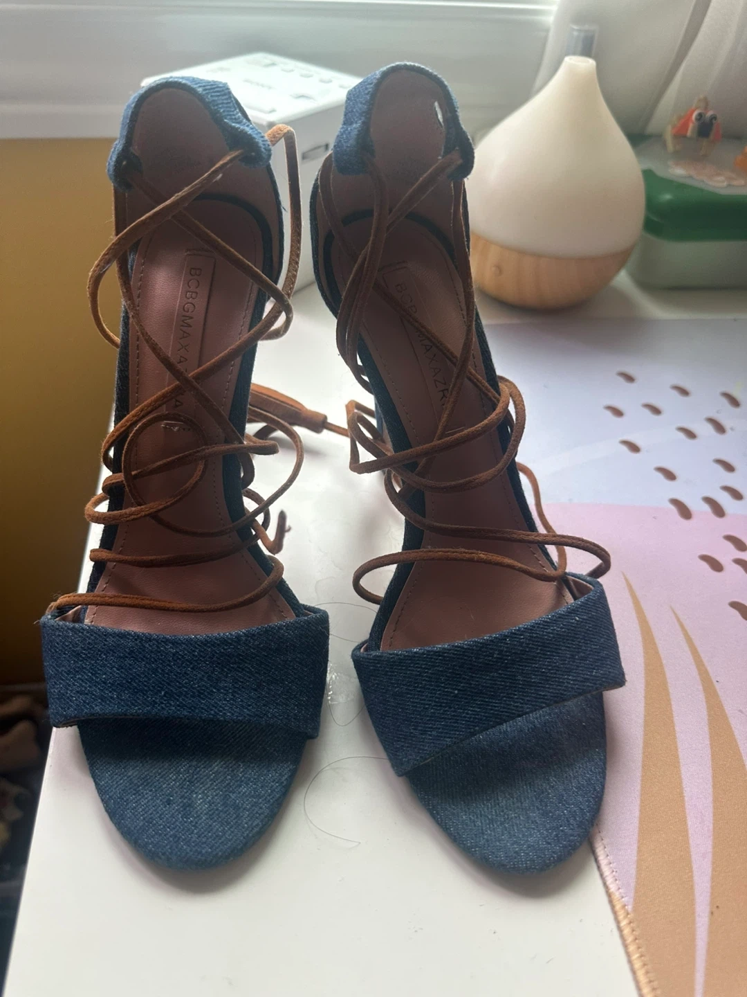 BCBG , black , Jean , rose gold and grey heels, Size 7