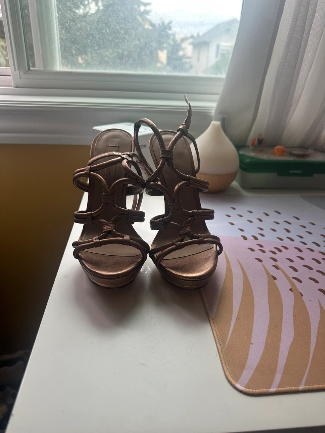 Selling a pair of BCBG heels. They are a beautiful metallic colour and size 7. These are in good condition and ready for a night out!