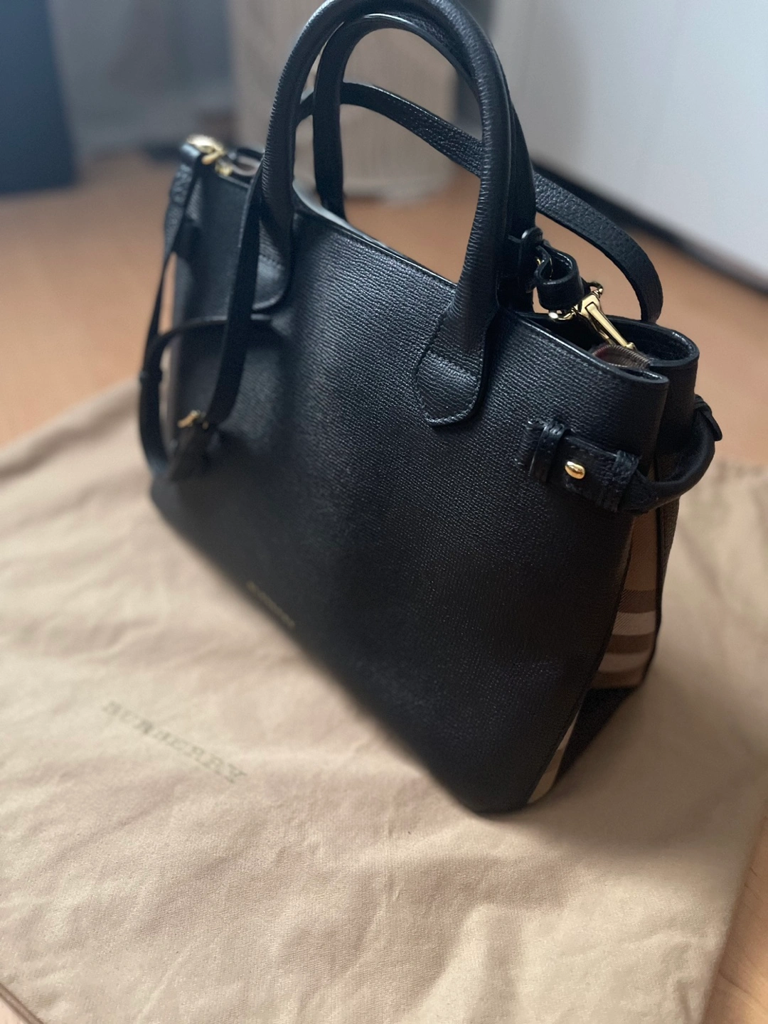 Authentic Burberry Black Leather Tote Bag