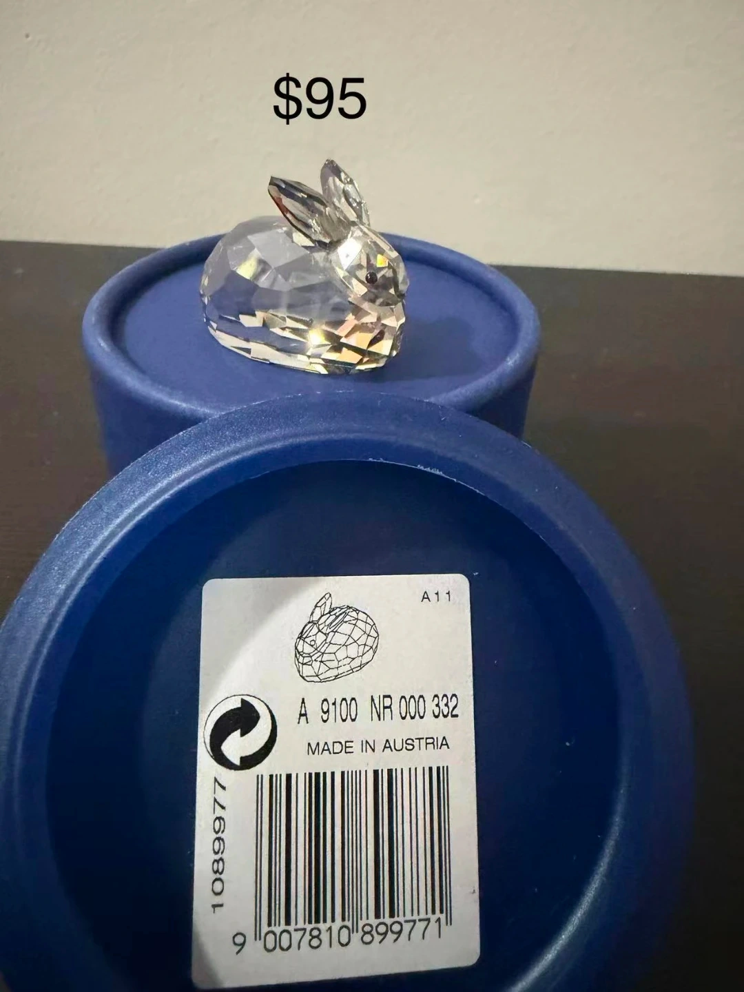 These are authentic Swarovski crystal bunny figurines, crafted in Austria. They come with their original boxes and packaging. Perfect for collectors or as a delicate decorative accent!